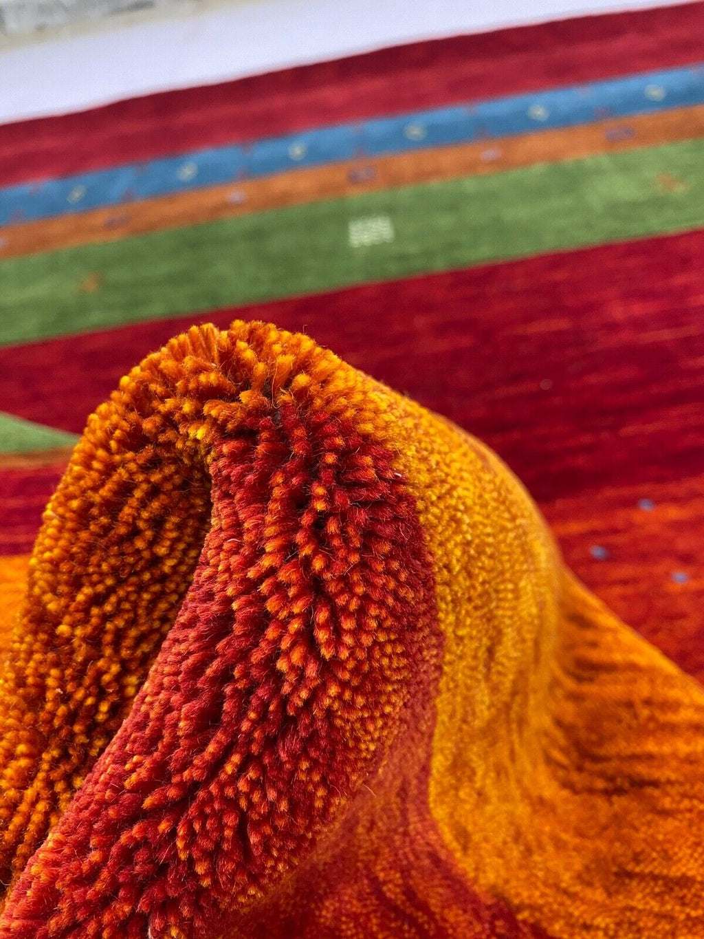 Zur Reinigung wird nur ein Staubsauger empfohlen (Bürste oder Elektrobesen vermeiden) Die Größe kann 2-4 cm variiren , bei Handarbeit Teppiche, variirt die Grösse immer ! Teppich wird gefaltet versendet.
