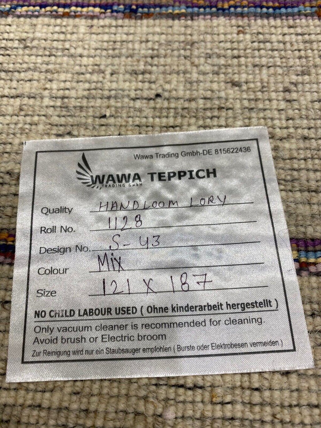 Teppich 100% Wolle Beige Blau loom lori Handgewebt 120x180 cm S43