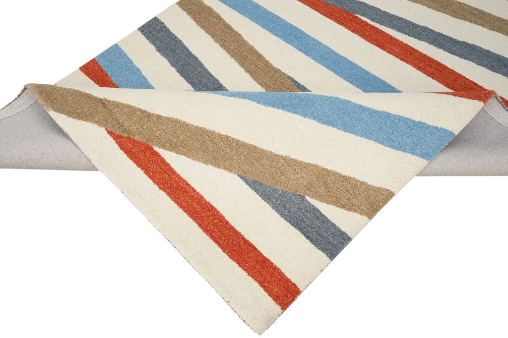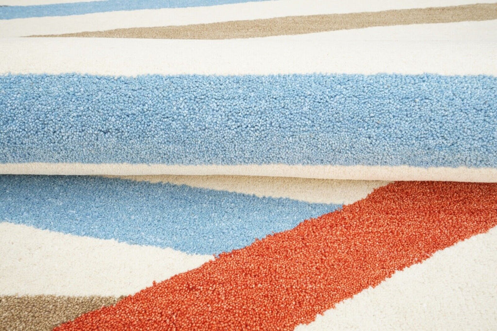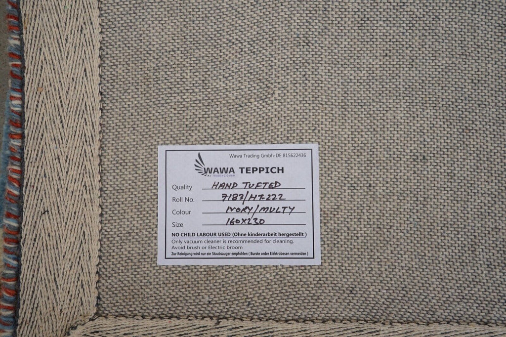 Teppich 100% Wolle Beige Braun Blau 160X230 cm Orientteppich Handgetuftet HT222u