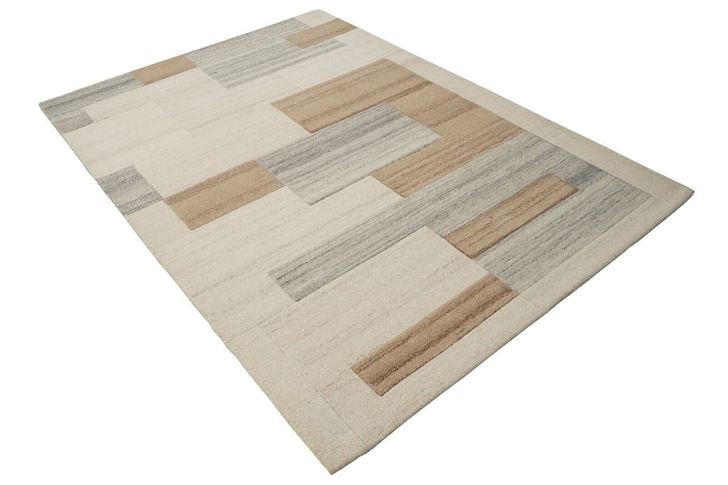 Teppich 100% Wolle Beige Braun Grau 160X230 cm Orientteppich Handgetuftet HT205