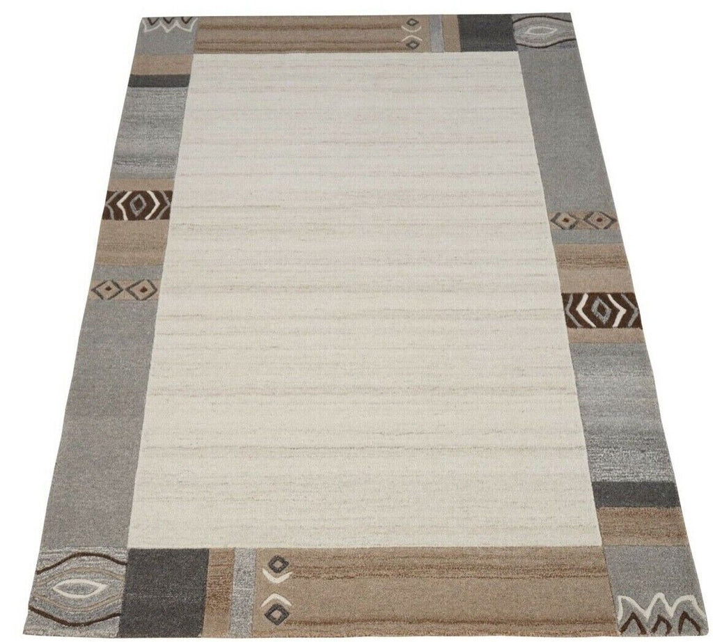 Teppich 100% Wolle Beige Braun Grau 160X230 cm Orientteppich Handgetuftet HT356
