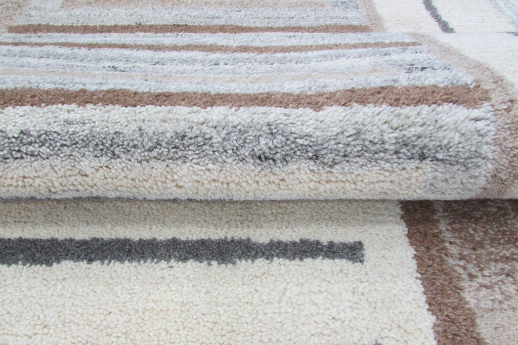 Teppich 100% Wolle Beige Grau Braun 160X230 cm Handarbeit Handgetuftet T855