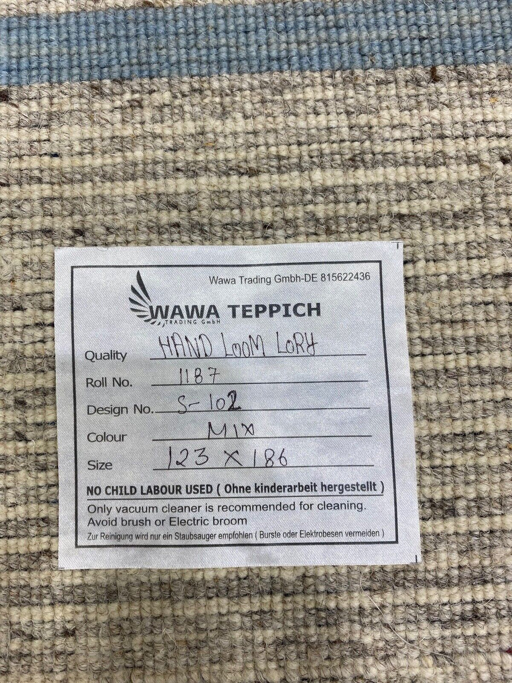 Teppich 100% Wolle Beige Grau Gabbeh lori Handgewebt 123x186 cm Naturwolle S102