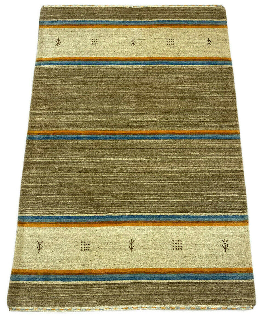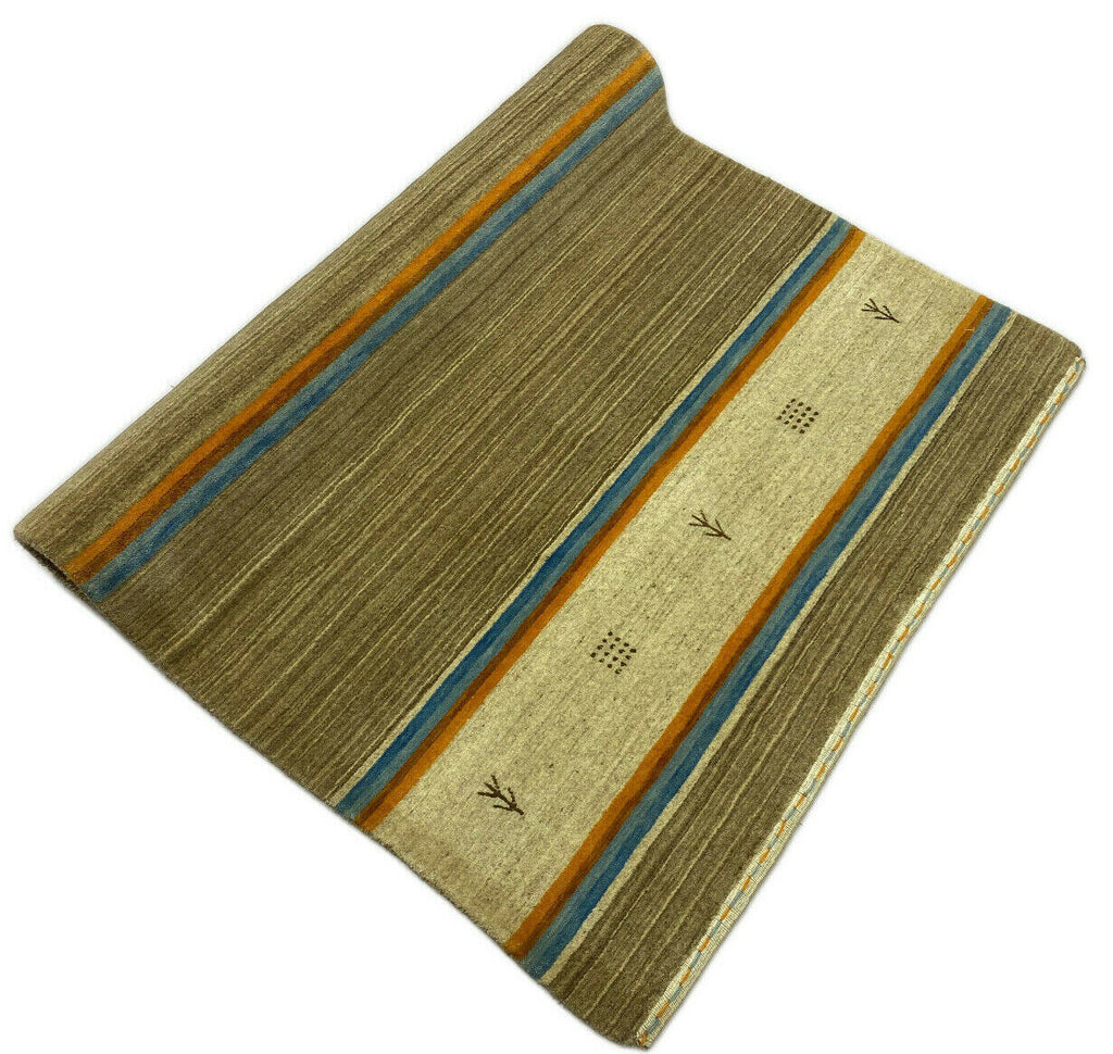 Teppich 100% Wolle Beige Orange Gabbeh Handgewebt 123x187 cm Naturwolle S106 rt