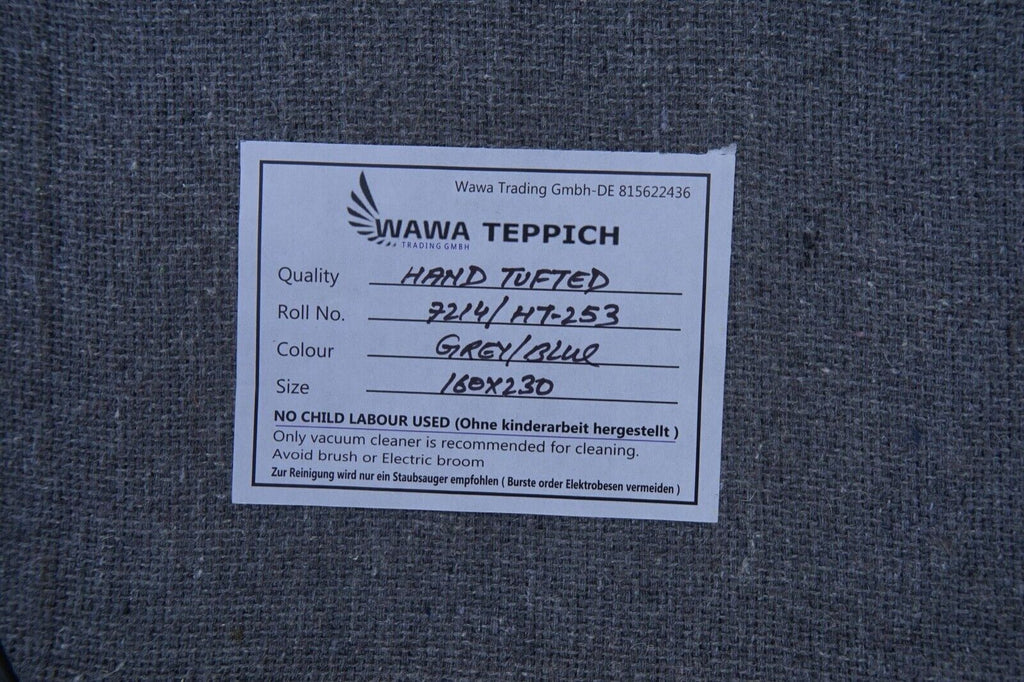 Teppich 100% Wolle Blau Grau 160X230 cm Handgetuftet Orientteppich HT253u