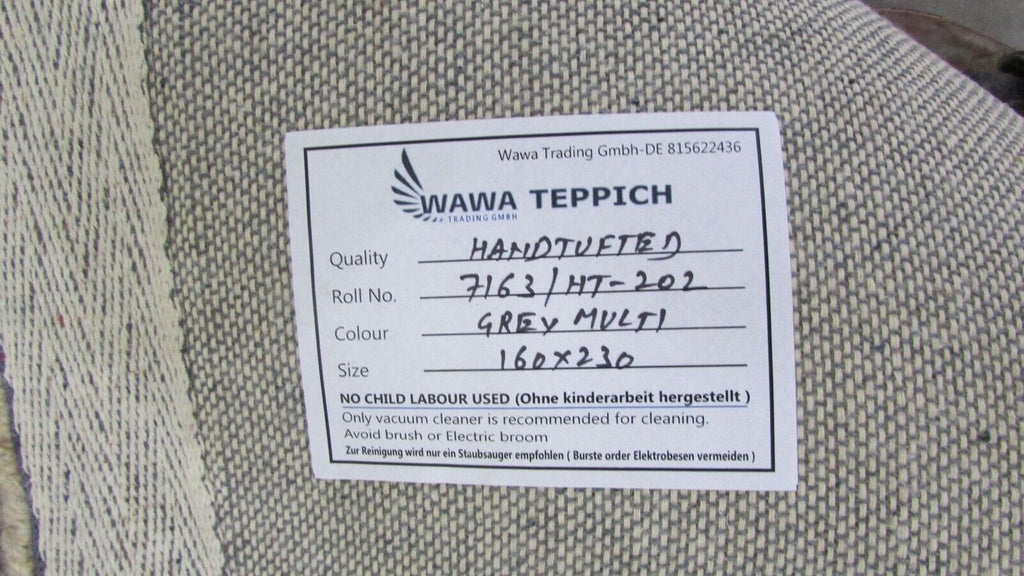 Teppich 100% Wolle Grau Beige 160X230 cm Natürliche Wolle Handgetuftet HT202