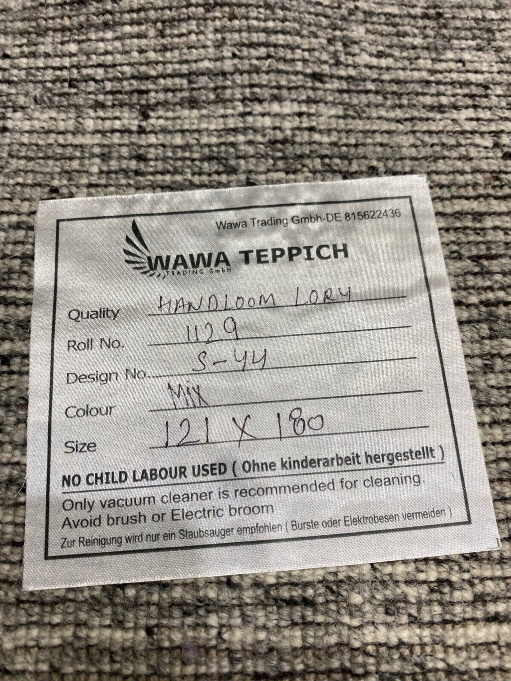 Teppich 100% Wolle Grau loom lori Handgewebt 120x180 cm dp Garn S44