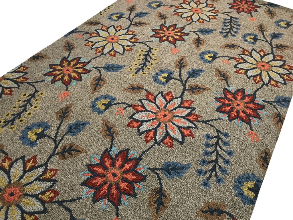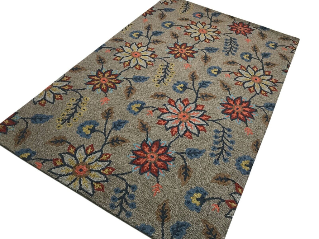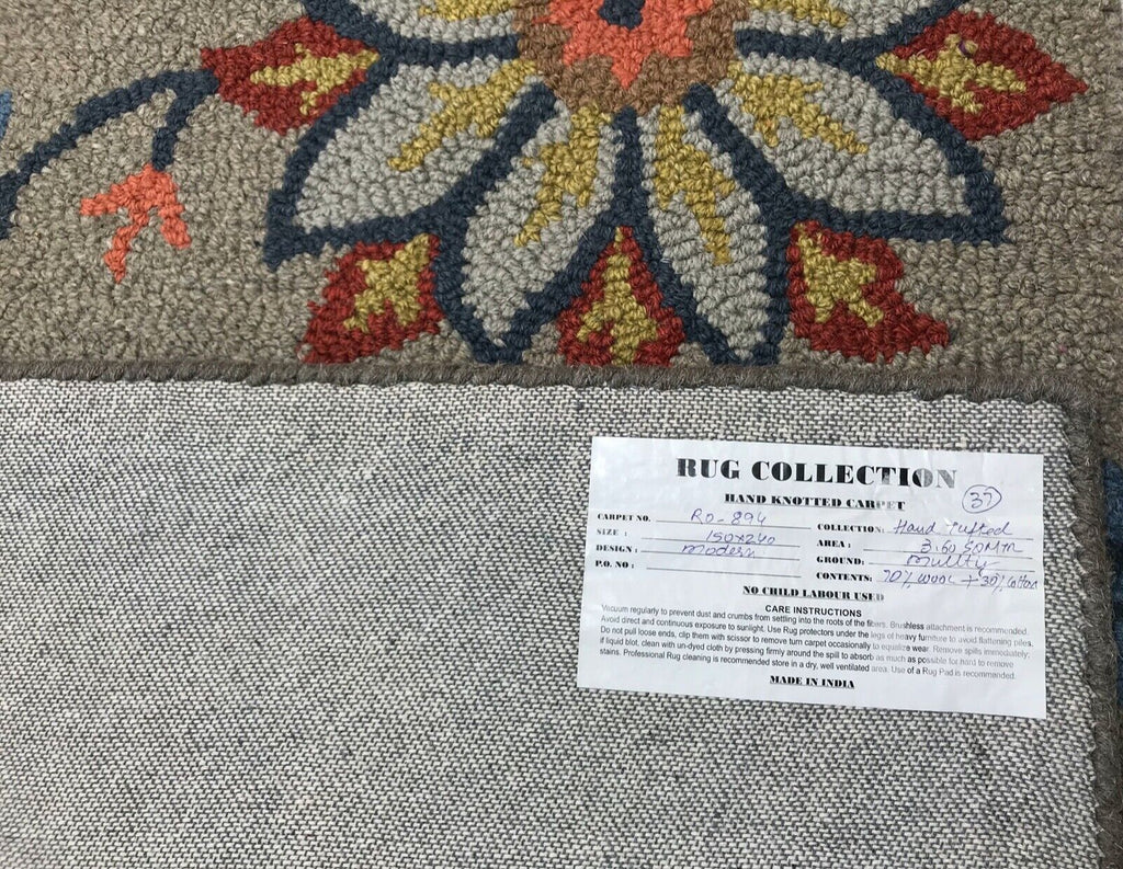 Teppich 100% Wolle Grau Orange Handarbeit Designer Orientteppich 150X240 CM