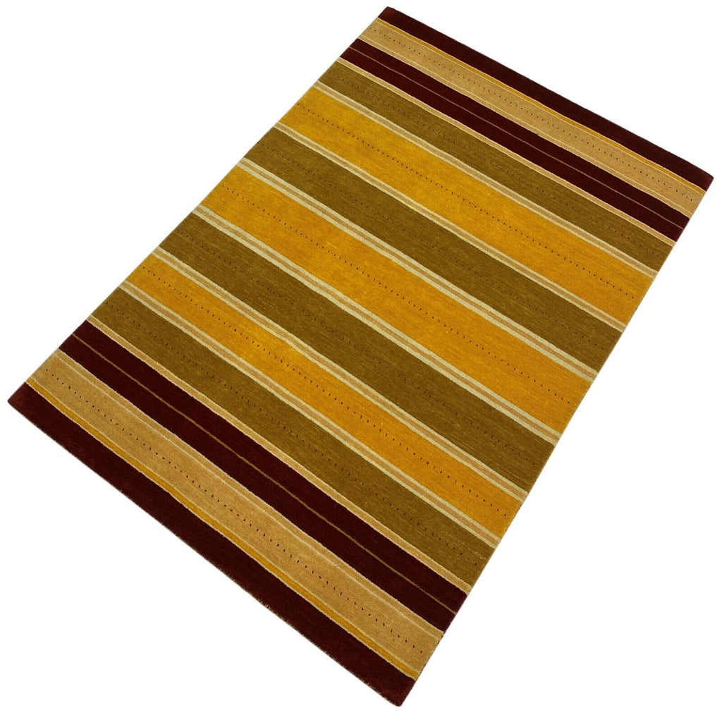 Teppich 100% Wolle Lori Handgewebt Gelb Rot Orientteppich 125x180 cm S91
