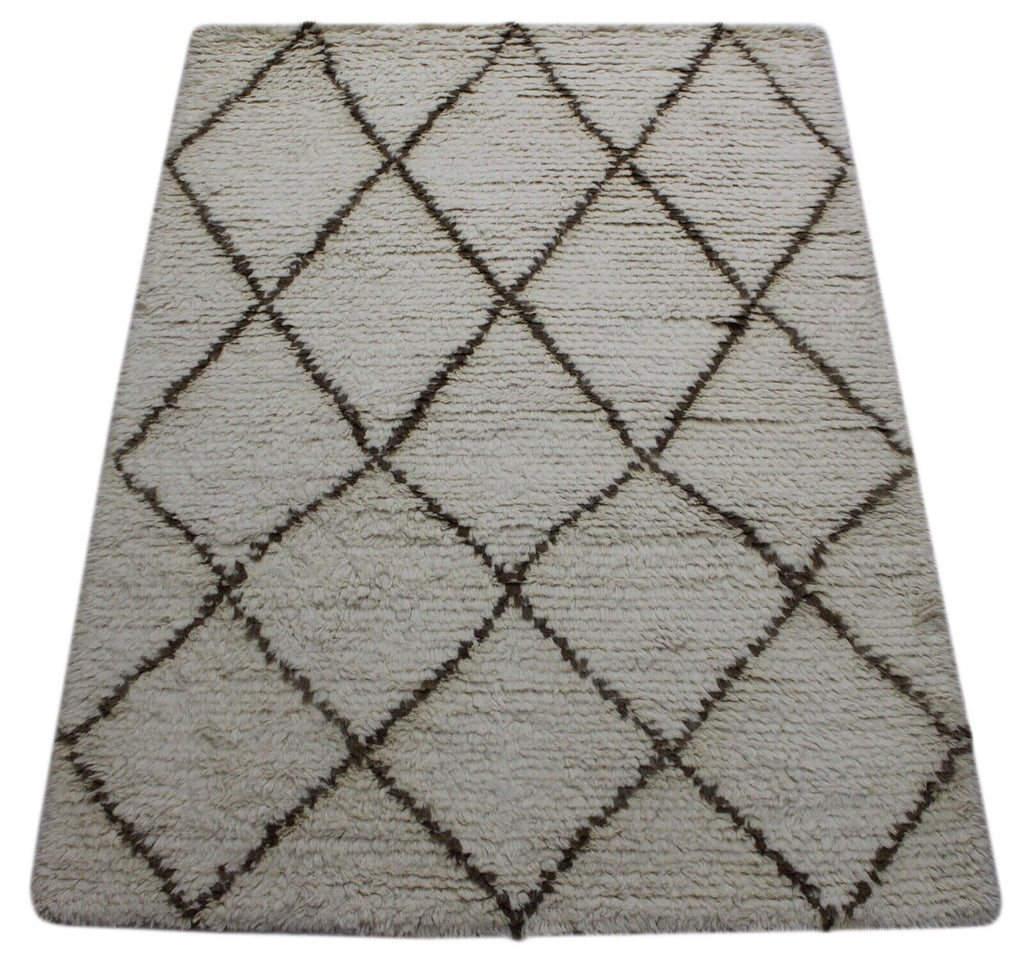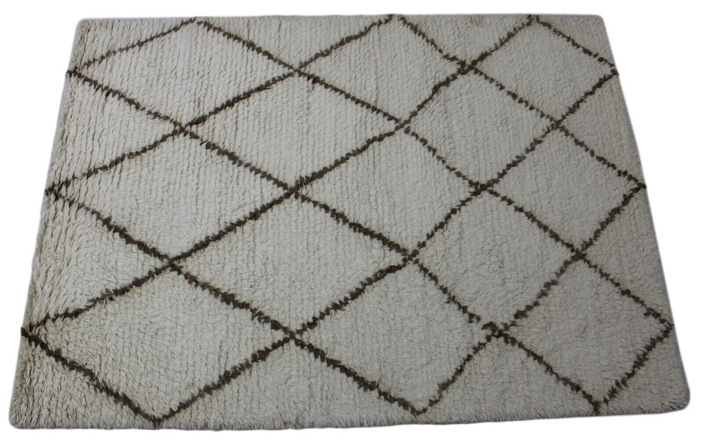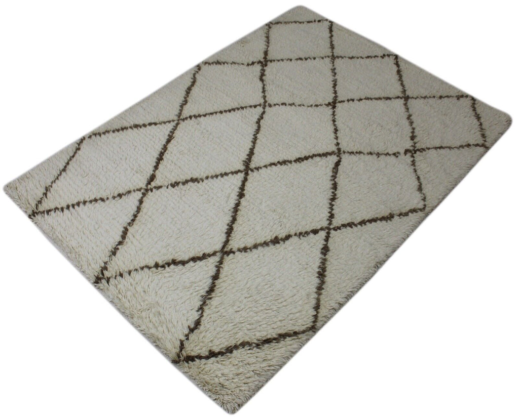 Teppich 100% Wolle Marokko Beige Elfenbein Handgewebt Orientteppich R40