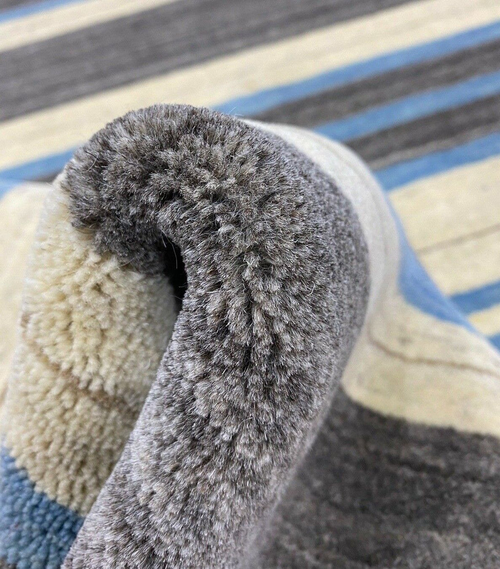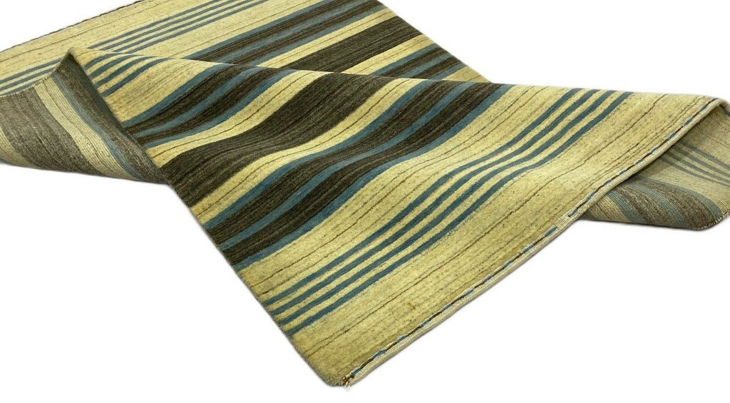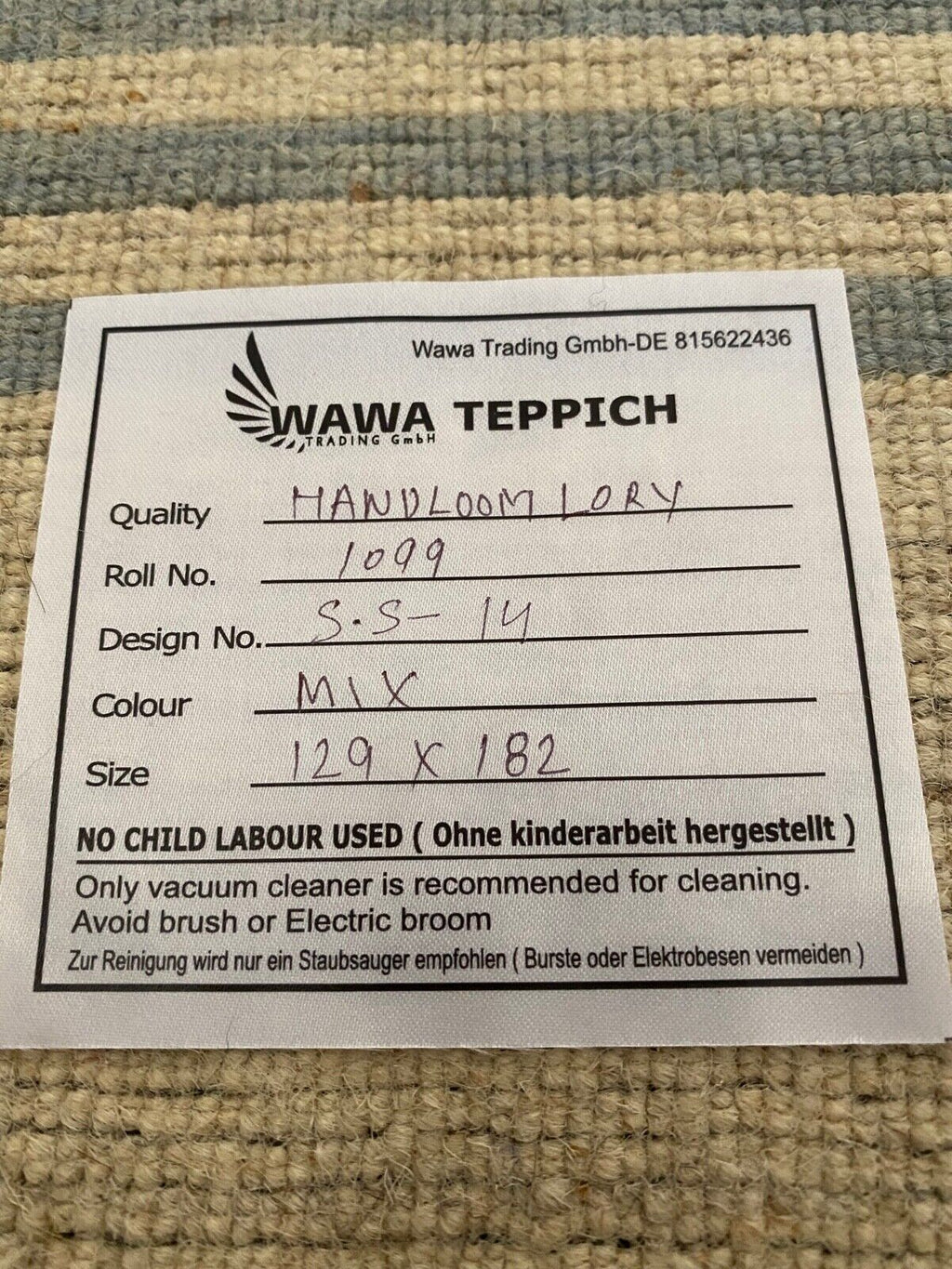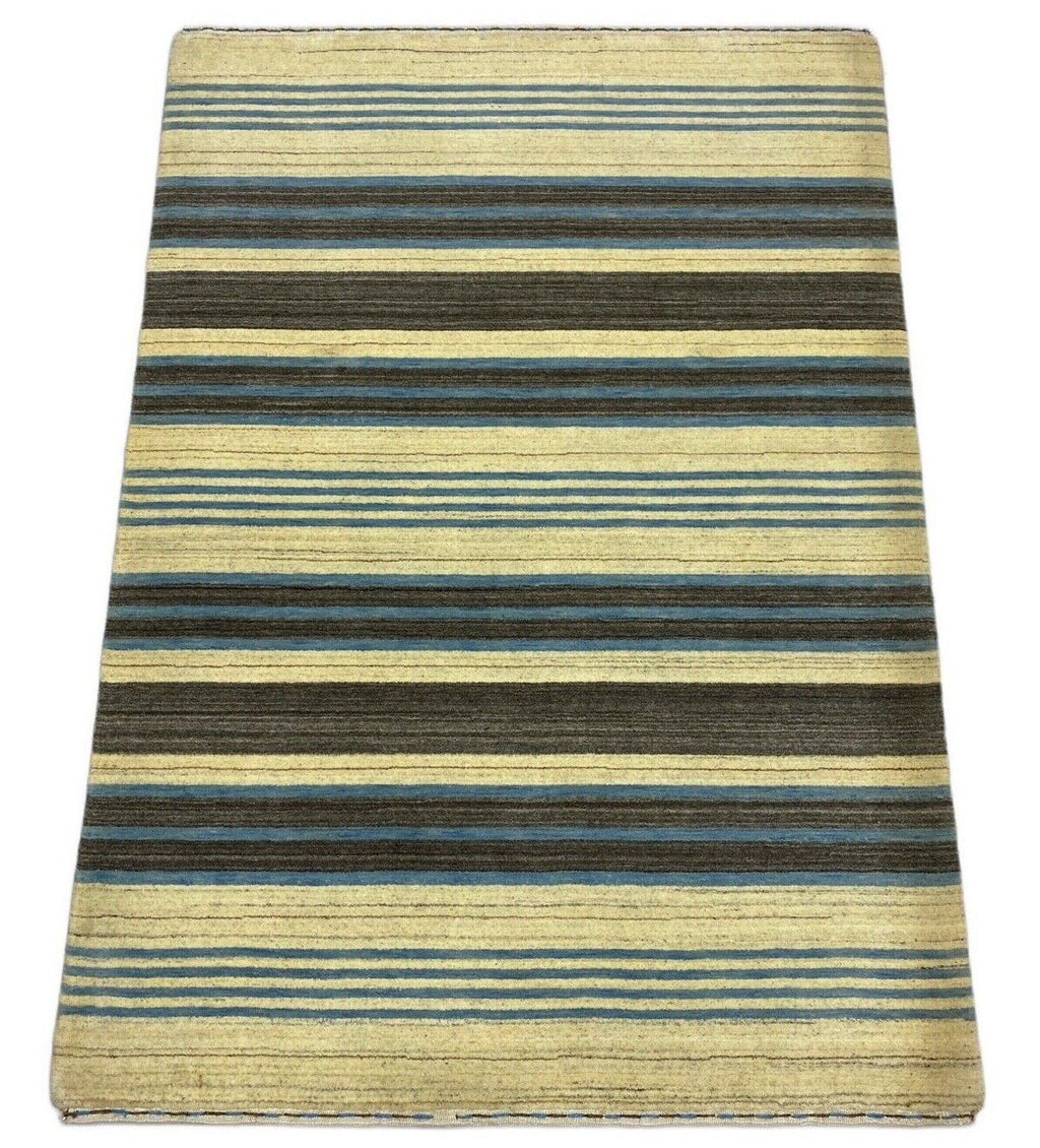 Teppich Gabbeh Beige Grau Blau 100% Wolle loom lori Handgewebt 129x182 cm S14