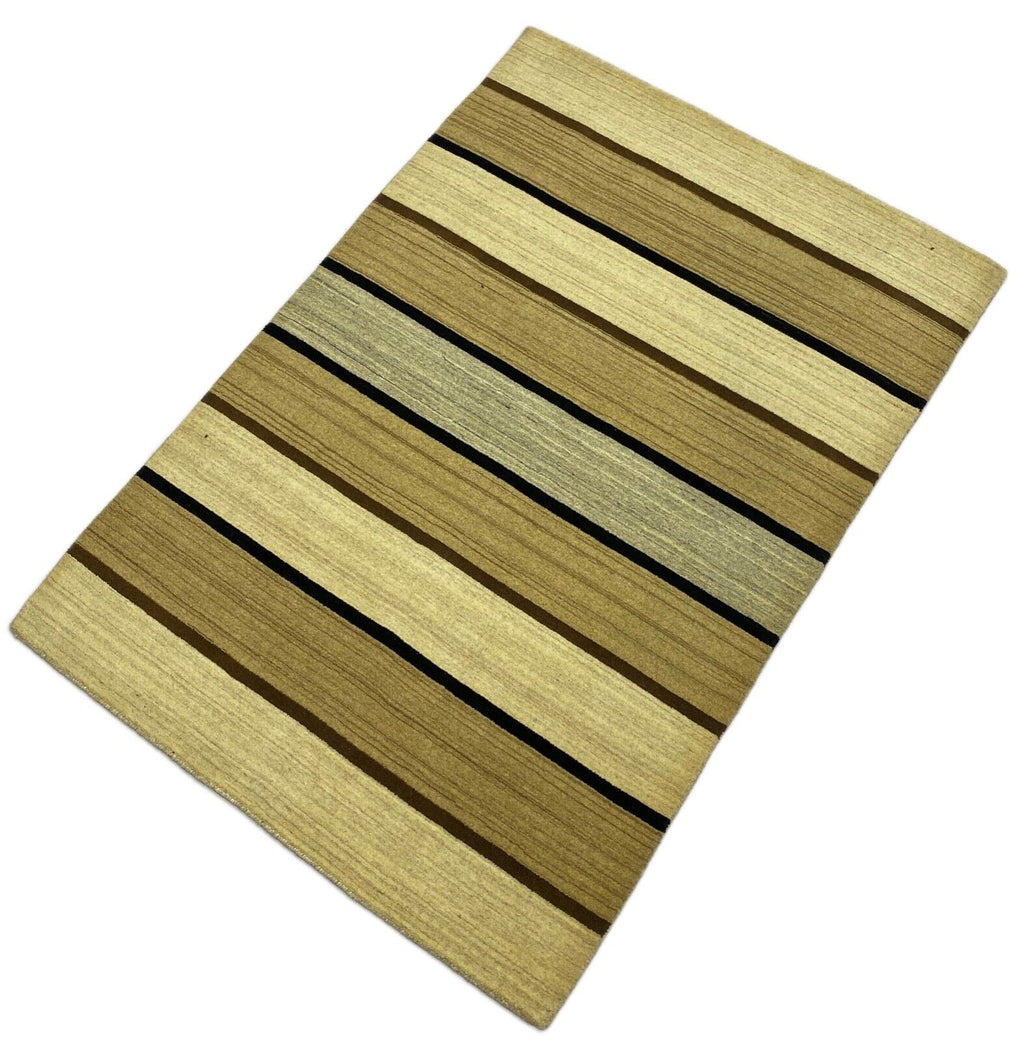 Teppich Gabbeh Beige Schwarz 100% Wolle lori Handgewebt 125x180 cm S28
