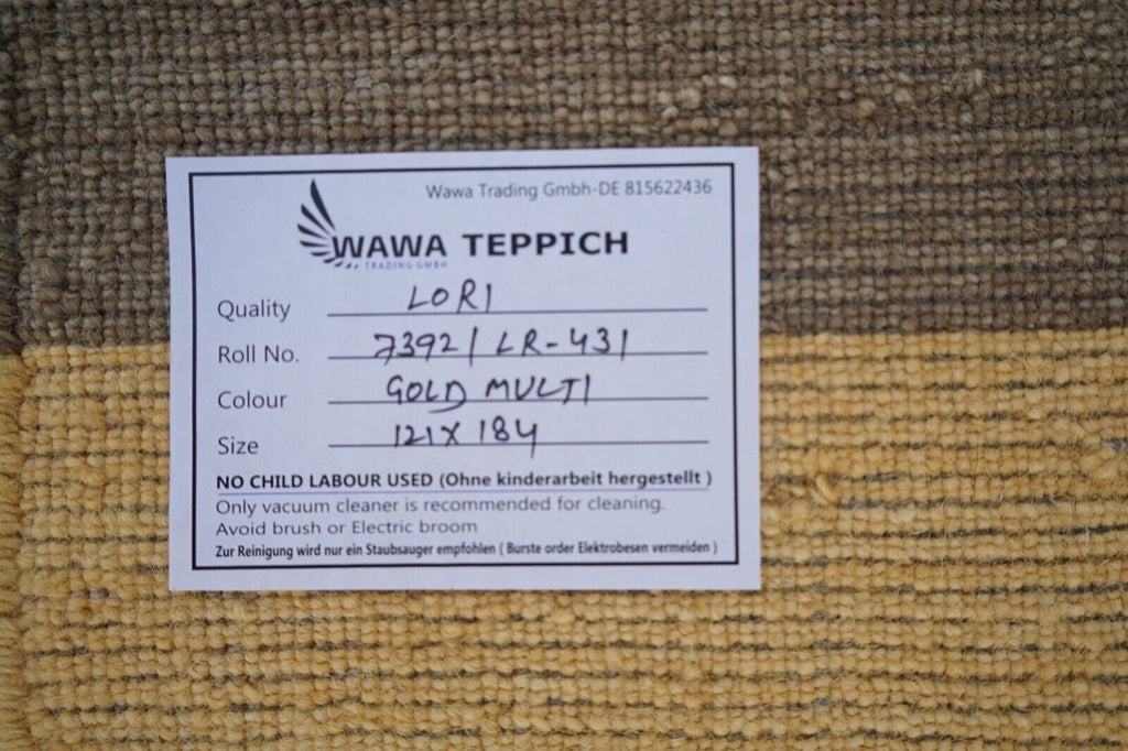 Teppich Gold Braun Handgewebt 100% Wolle 121x184 cm Orientteppich Lori Lr431