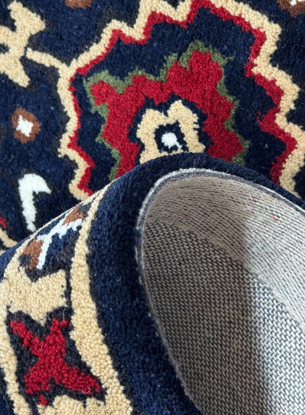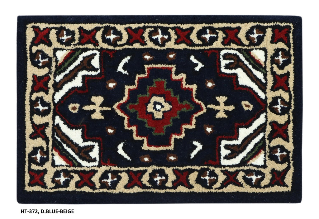 🧿 Handgetufteter Wollteppich 40x60 cm – Blau/Beige – Oriental Muster
