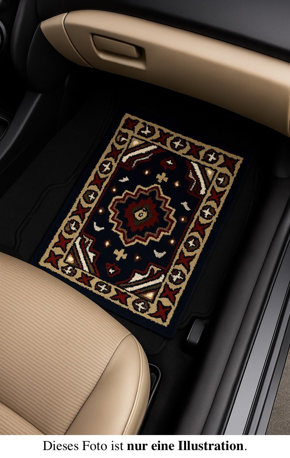 Der Teppich kann auf der Beifahrerseite verwendet werden, sofern er nicht verrutscht oder beim Fahren stört. Für die Fahrerseite nicht empfohlen, da er die sichere Bedienung von Pedalen beeinträchtigen kann.