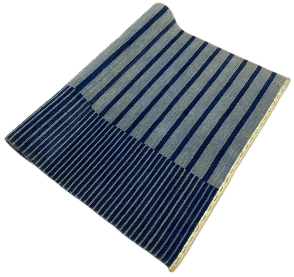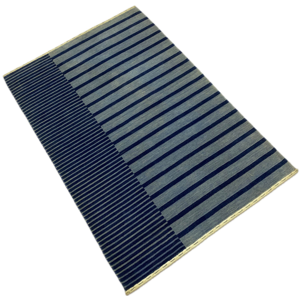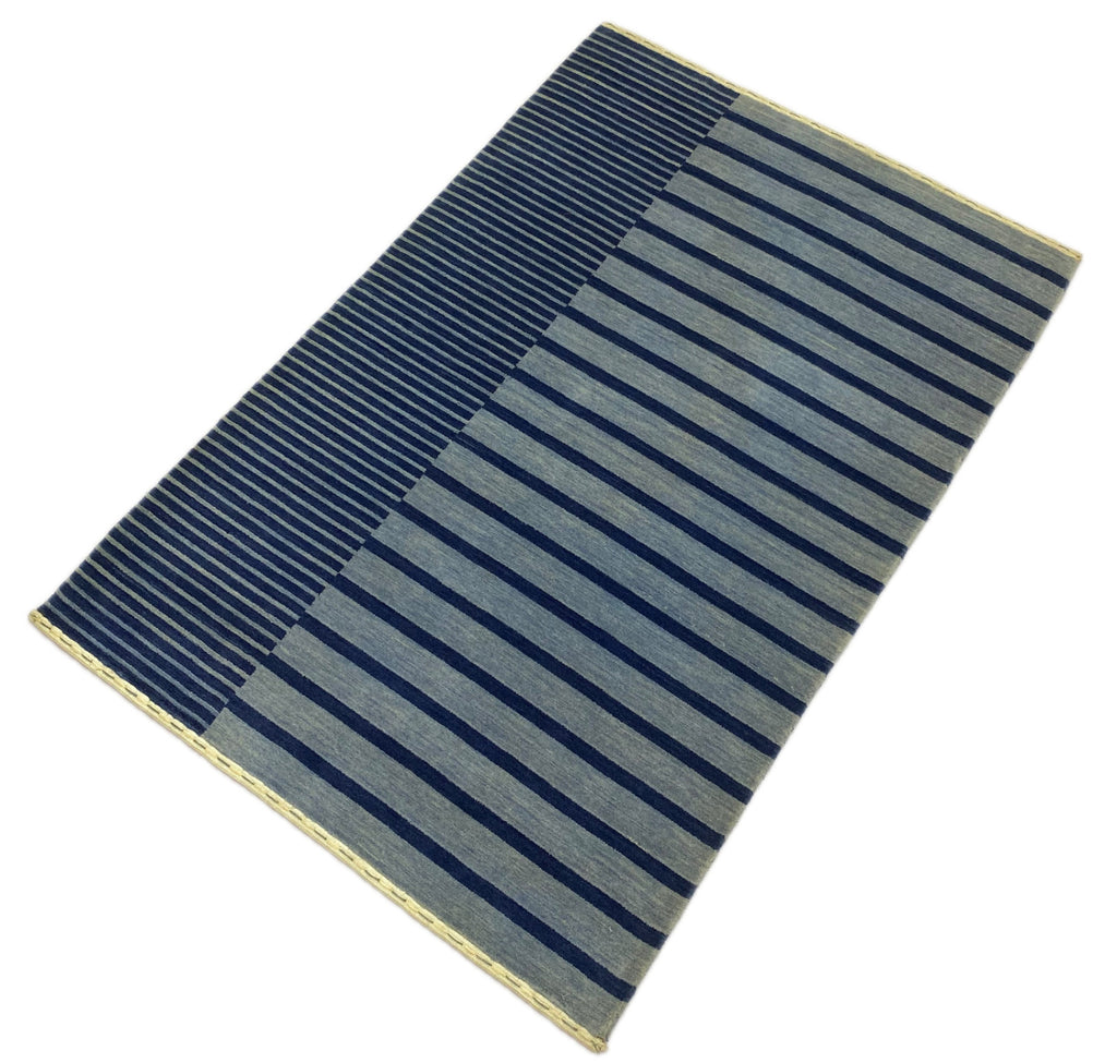 Alfombra de lana hecha a mano 125x185 cm Alta calidad Azul oscuro Azul claro Moderna 191