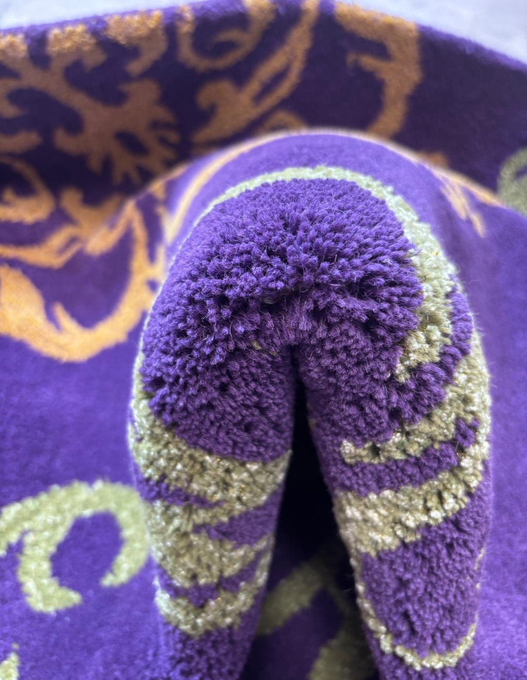 Pyöreä villamatto Jary-kuviolla – tyylikäs, käsintehty ja todellinen katseenvangitsija.