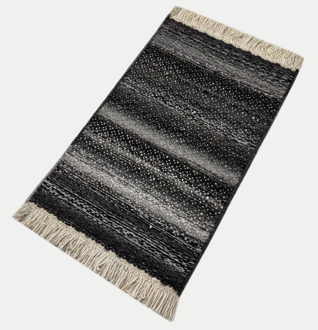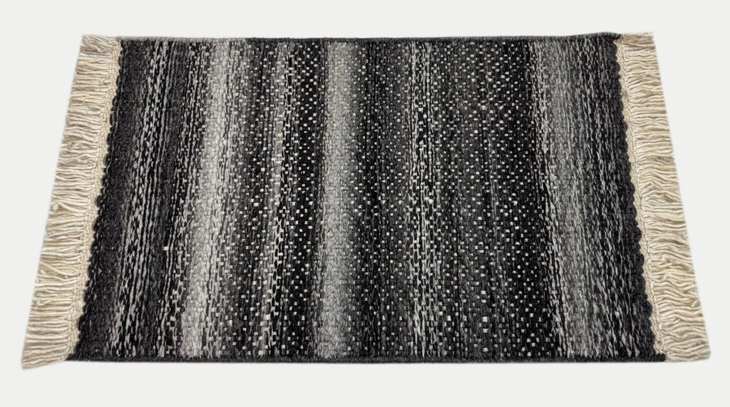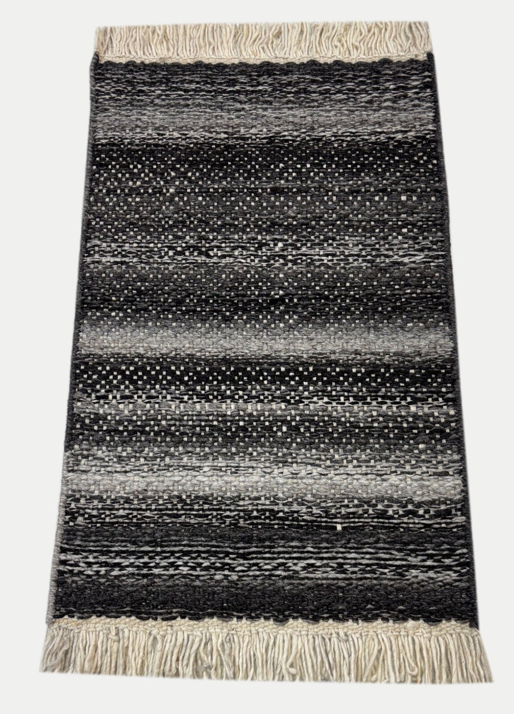 Villamatto 60x90 Käsin solmittu mustan beigen värinen tasapintainen matto hapsuilla 30 R