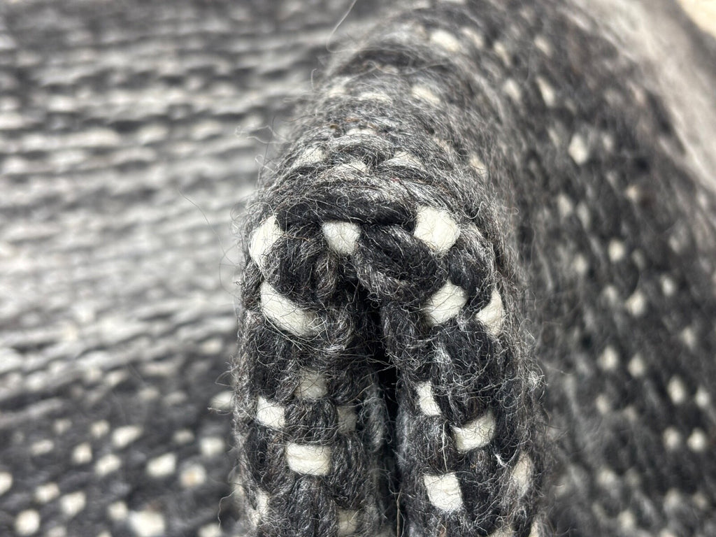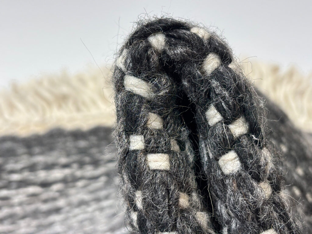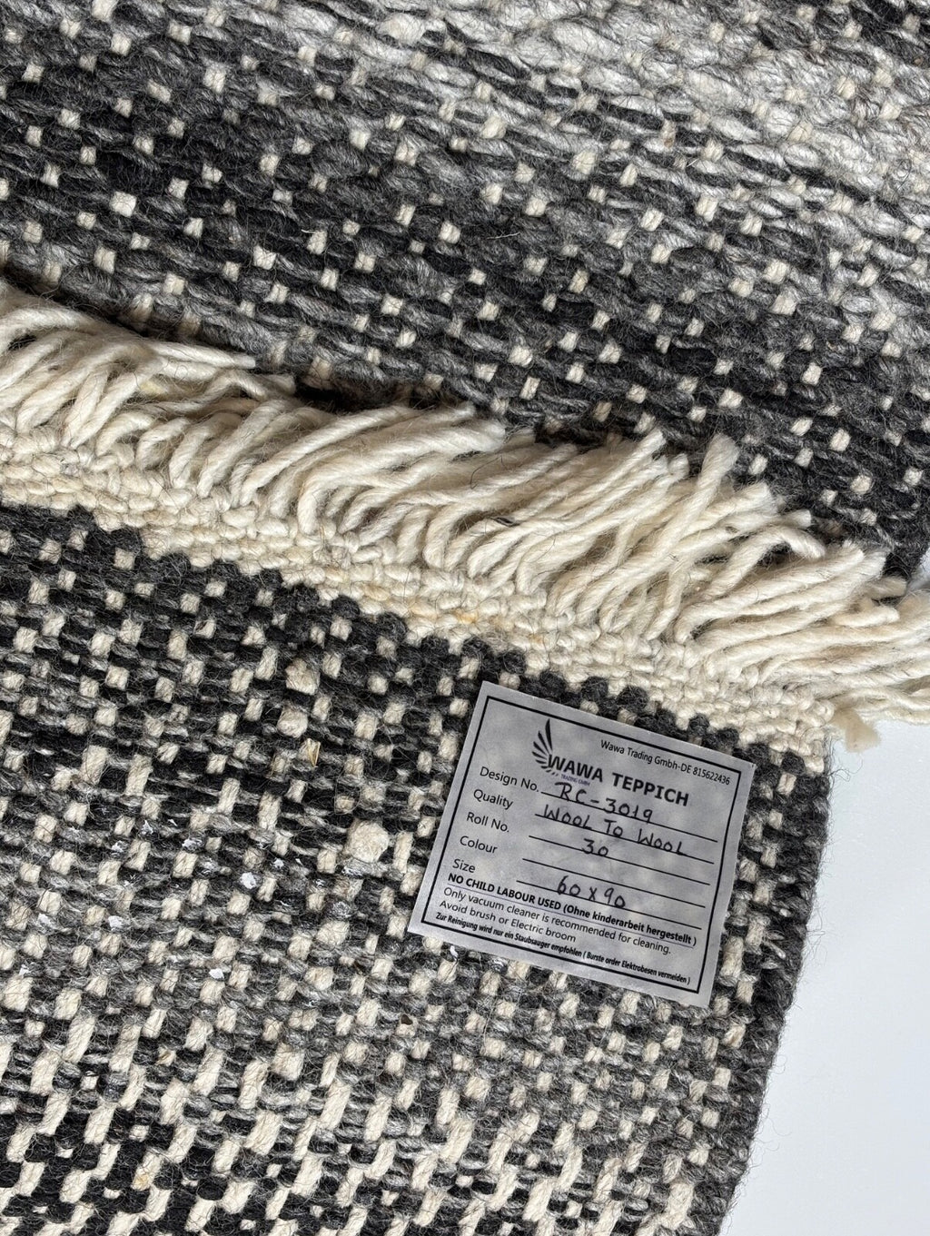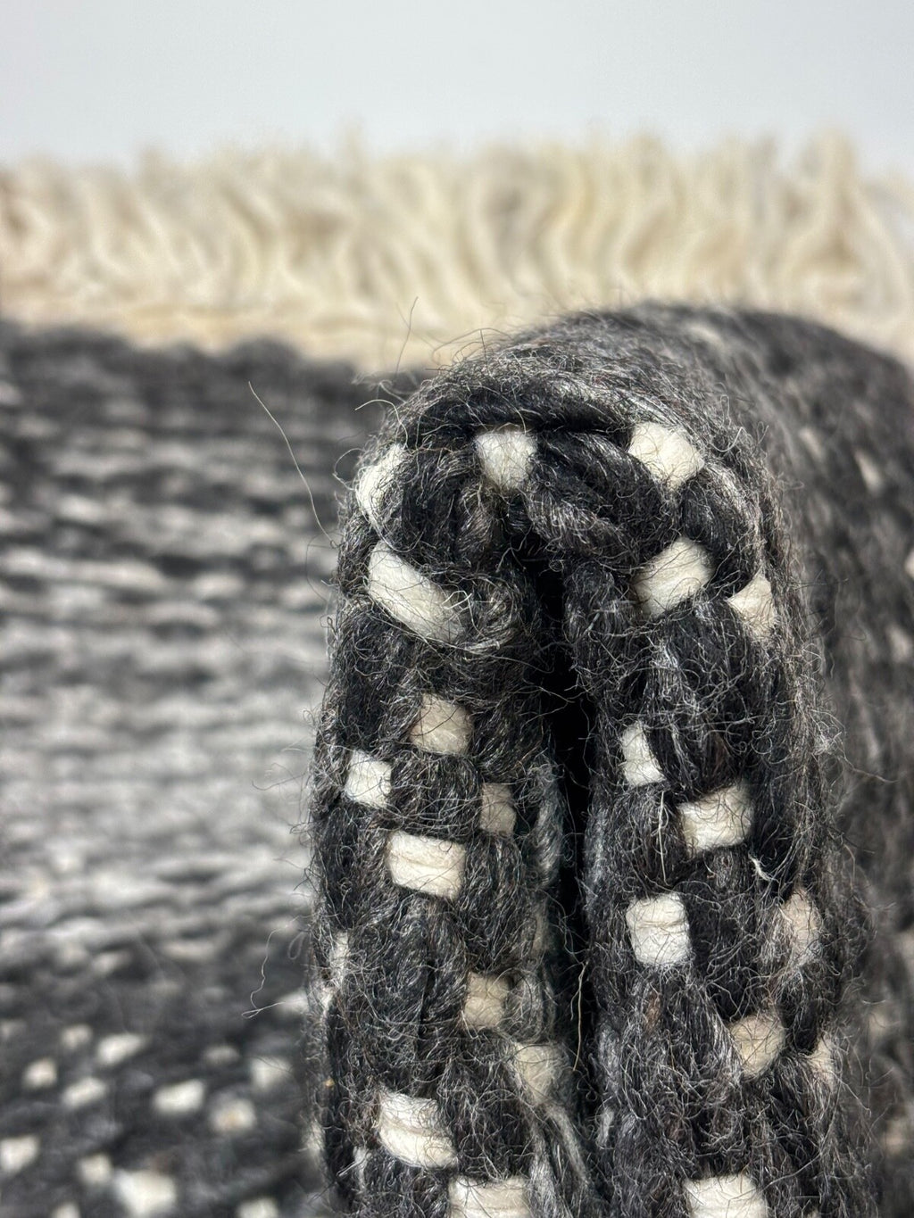 Villamatto 60x90 Käsin solmittu mustan beigen värinen tasapintainen matto hapsuilla 30 R