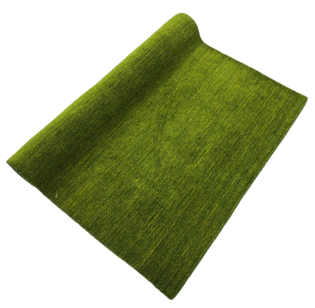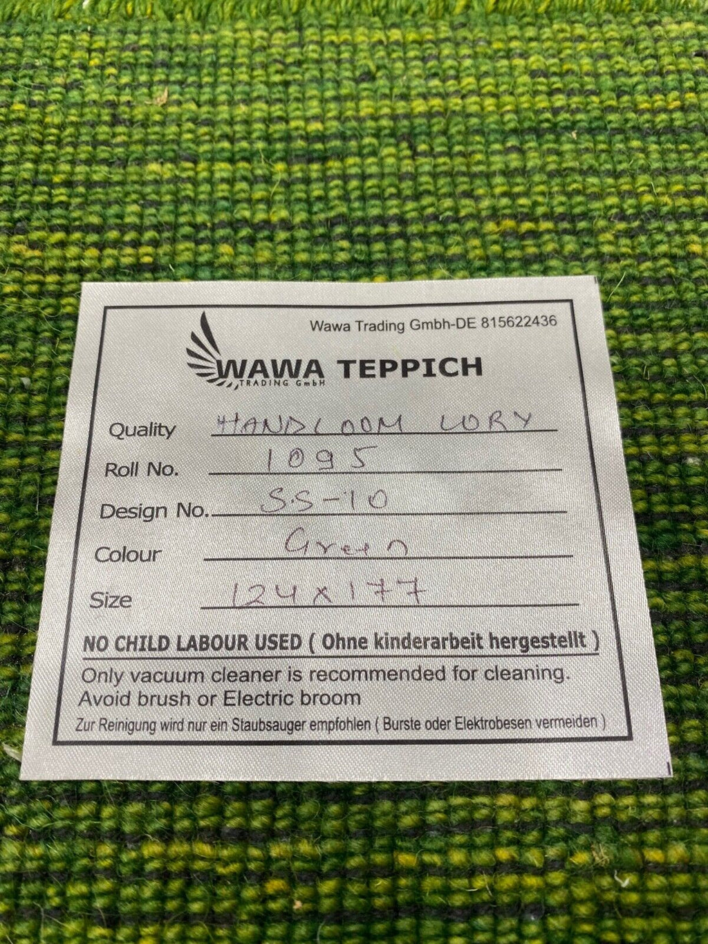 Tapis Gabbeh vert, 100 % laine, métier à tisser lori, tissé à la main, 124 x 177 cm, S10