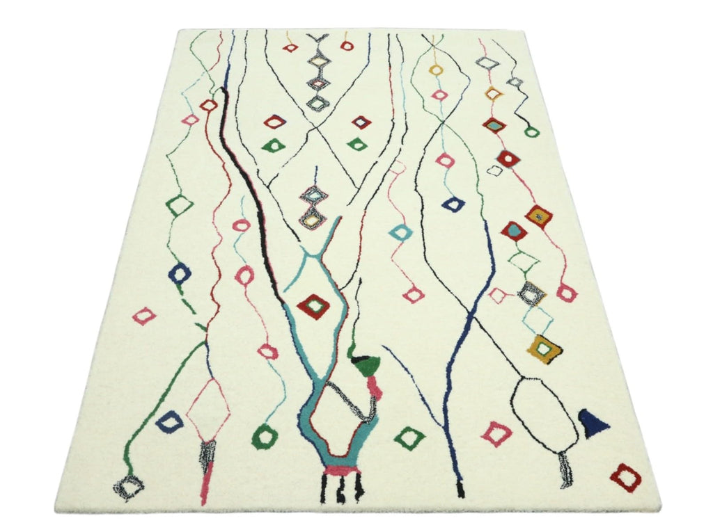 Wawa Teppich – Handgetufteter Wollteppich 120x180 cm 170X240 cm Dieser Teppich wird aus reiner Wolle handgetuftet und überzeugt durch seine weich-warme Struktur. Die Rückseite besteht aus 100% Baumwolle und sorgt für Stabilität und eine gute Formhaltung. Das bunte Berber-Muster im marokkanischen Stil macht jeden Teppich zu einem besonderen Einzelstück. Perfekt für Wohn-, Schlaf- und Kinderzimmer. * Flor: 100% Wolle * Rückseite: 100% Baumwolle * Handgetuftet in Indien * Gesamthöhe ca. 18 mm * Geeignet für Fußbodenheizung * Buntes Berber Muster – moderner Marokko Stil Da Handarbeit: leichte Maßabweichungen von 2–4 cm möglich.