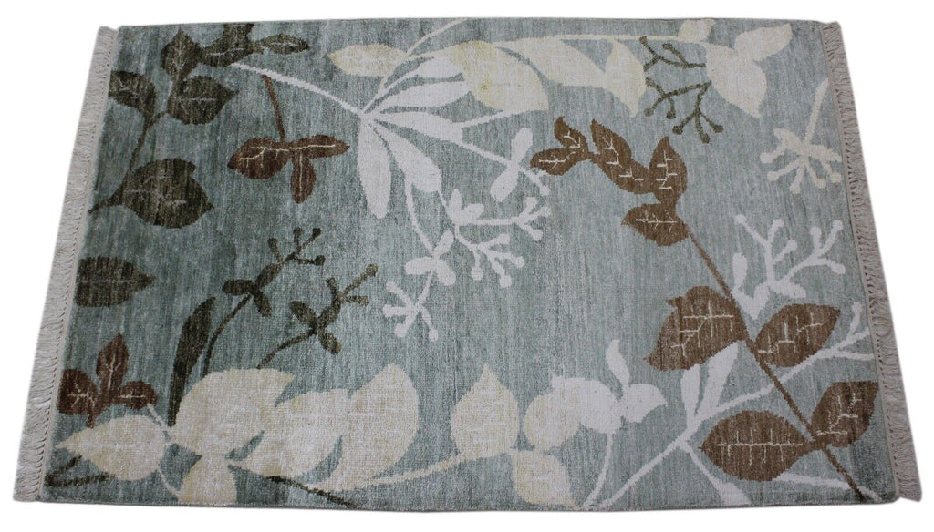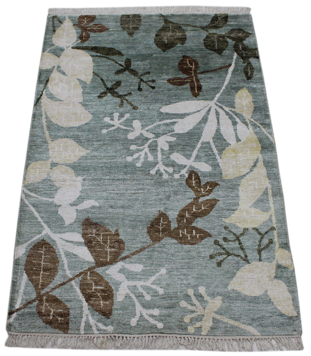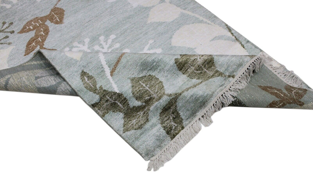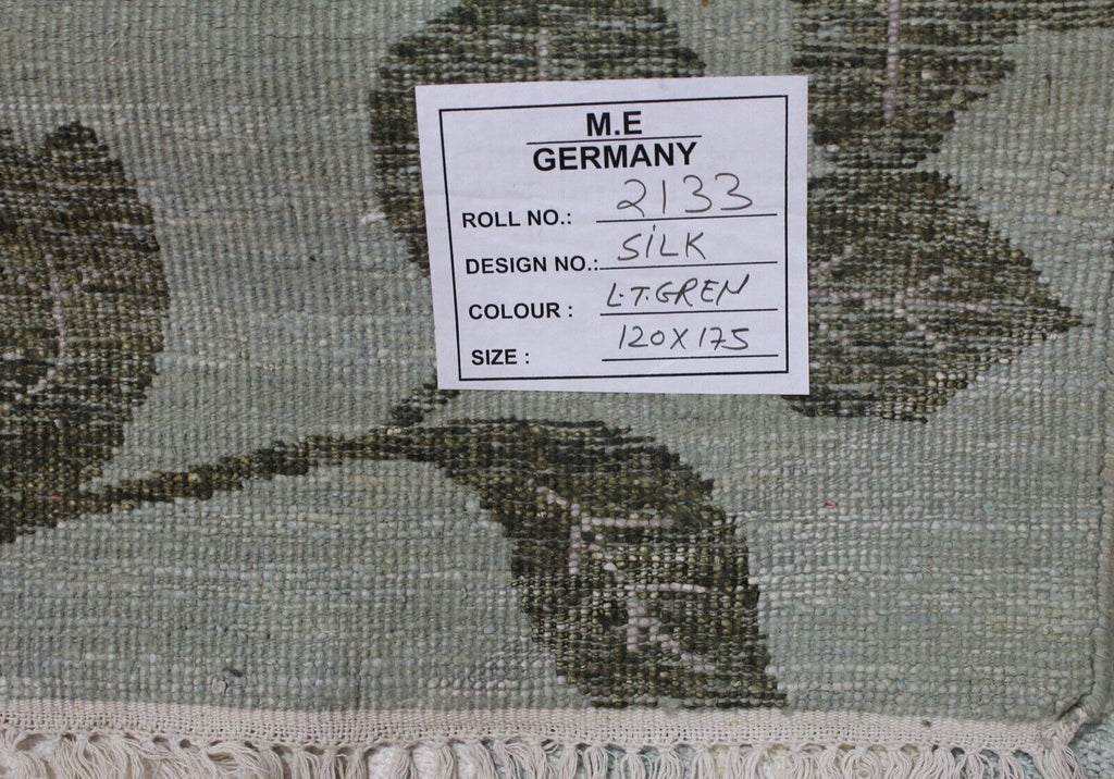 Ručno čvorani svileni tepih, 120x180 cm, svijetlozelene/sive boje.