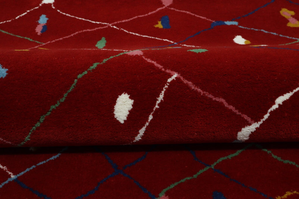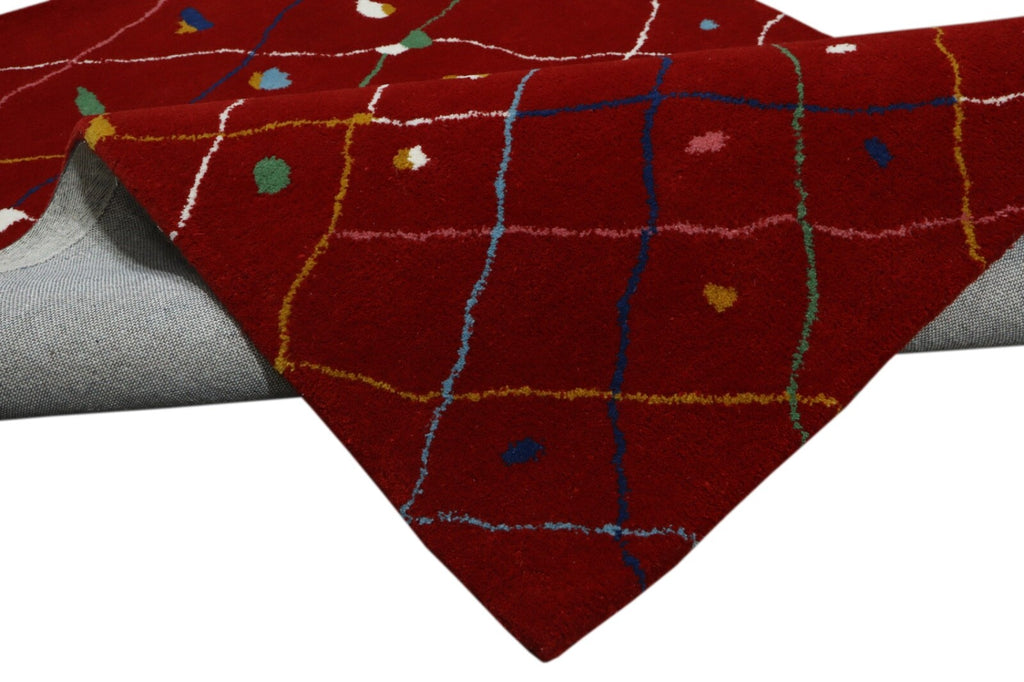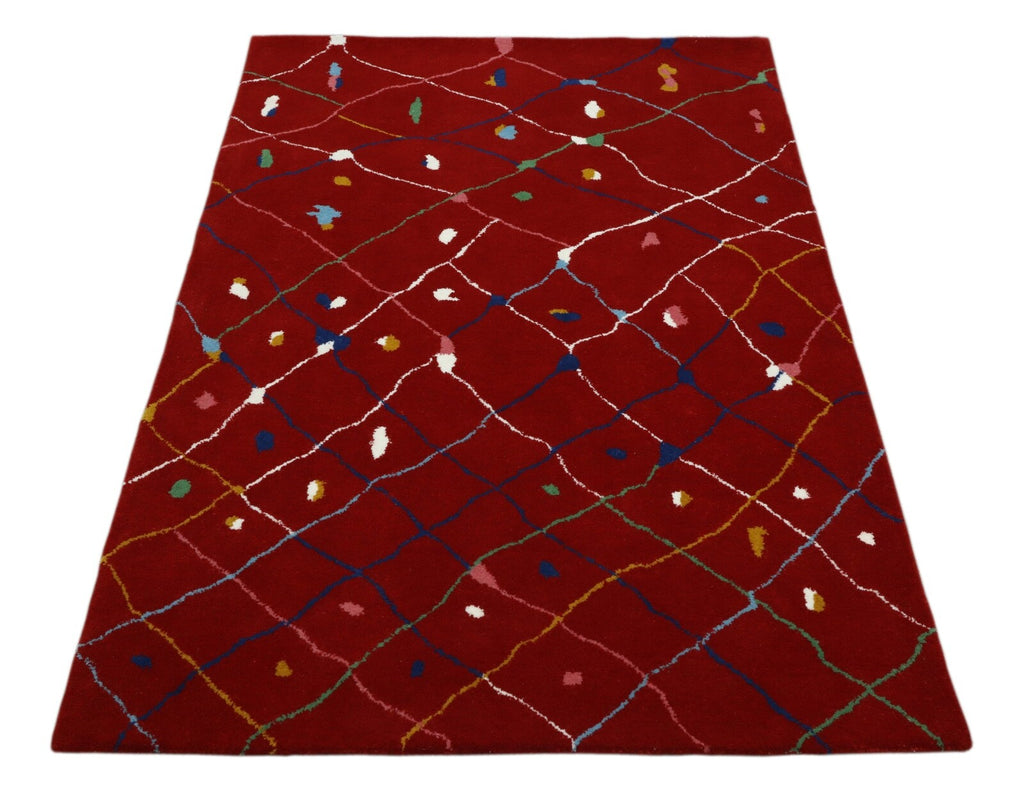 Gyapjú szőnyeg 120x180 piros, többszínű, rombuszmintás, modern marokkói szőnyeg, kézzel csomózott