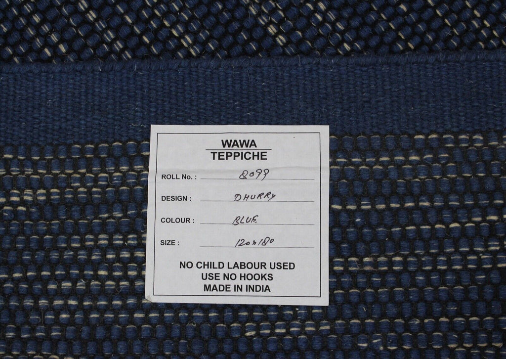 Tappeto blu per soggiorno, 100% lana, tessitura piatta, colorato, 120x180 cm, Kilim, tessuto a mano