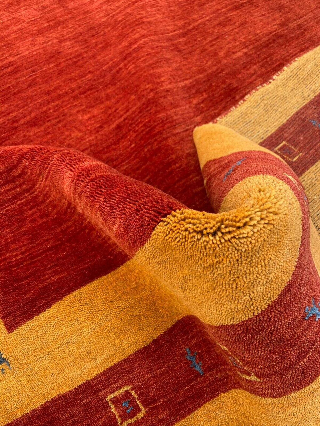 Tappeto Gabbeh, 100% lana, 200x300 cm, rosso, oro, blu, tessuto a mano, tappeto orientale, 113