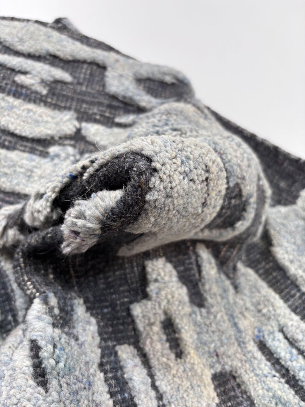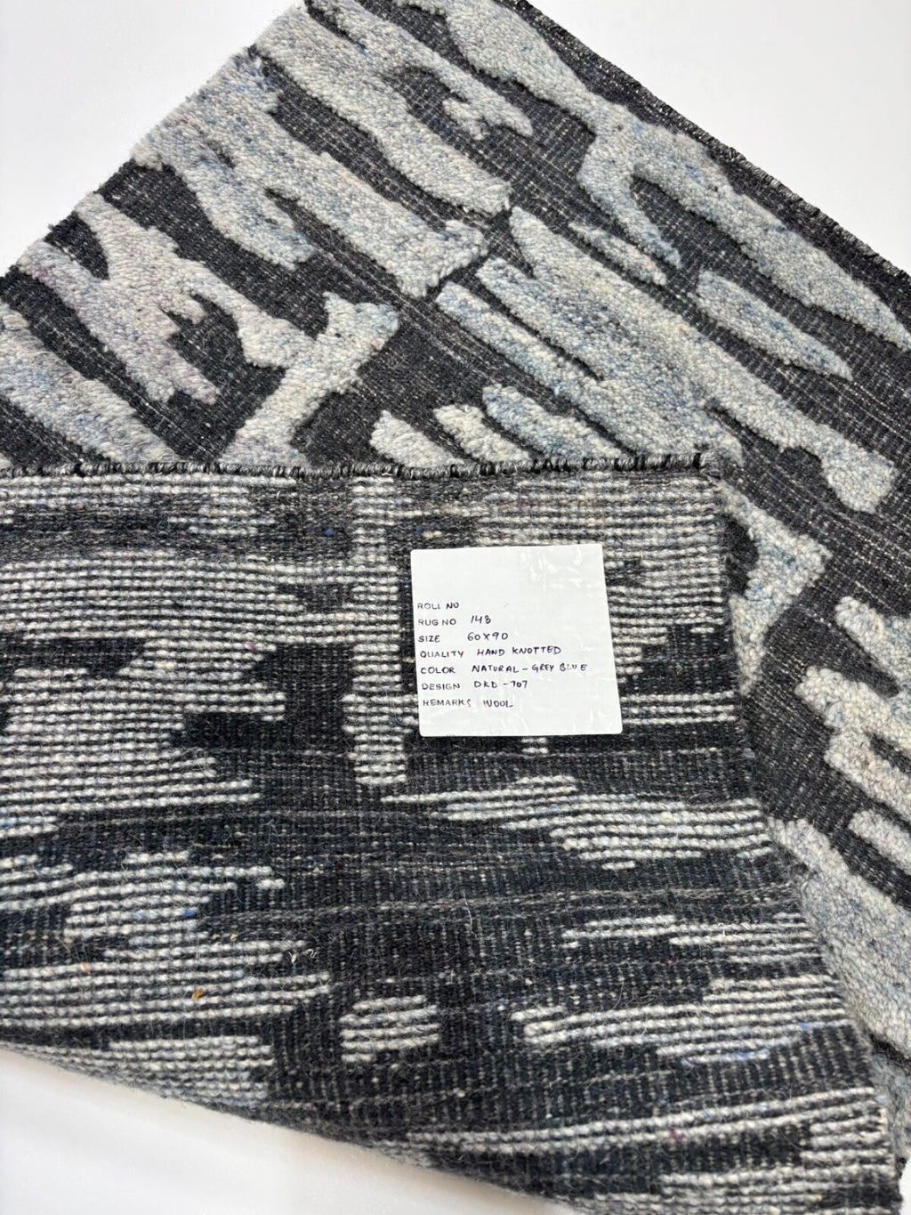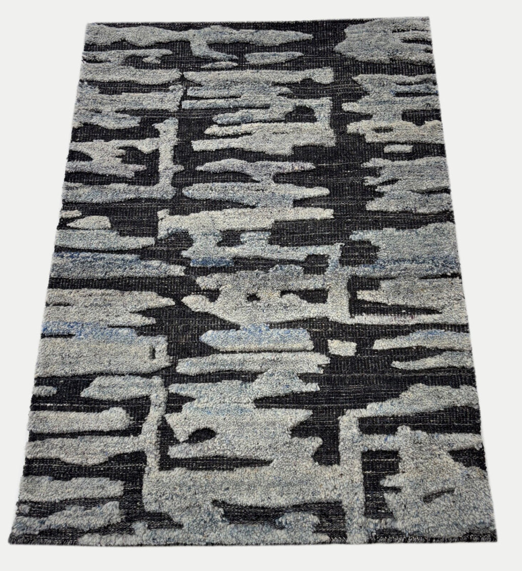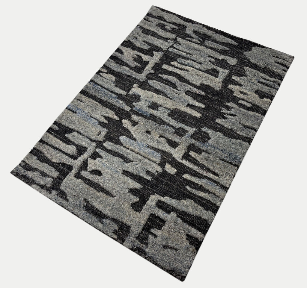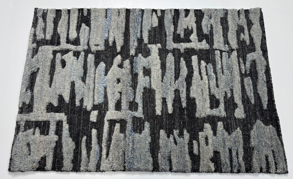 Tappeto annodato a mano in lana 100% 60x90cm Design moderno Naturale Grigio Blu ST148