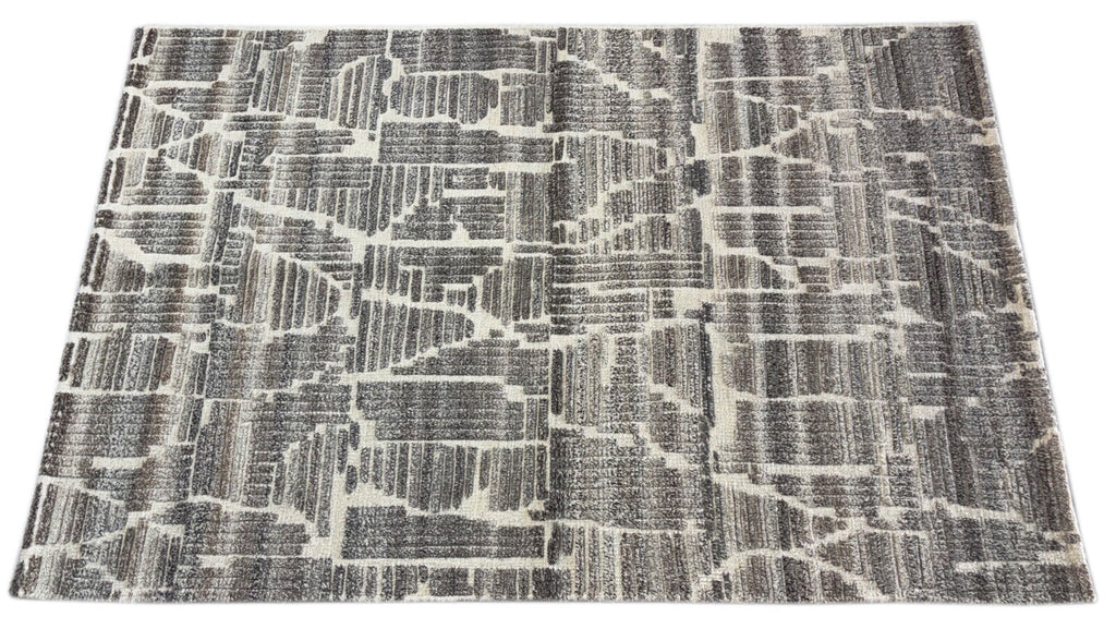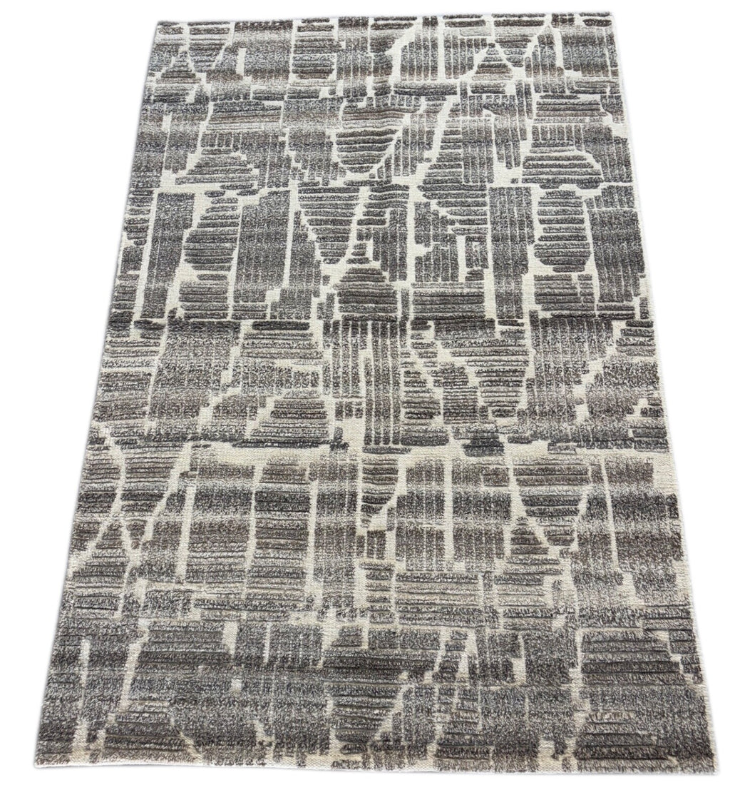Tappeto in lana annodato a mano 152x243 cm Beige naturale grigio Design moderno DT977
