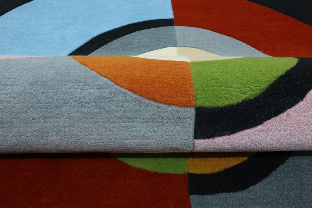 Tappeto nero e multicolore, 100% lana, 160x230 cm, fatto a mano, annodato a mano, T934