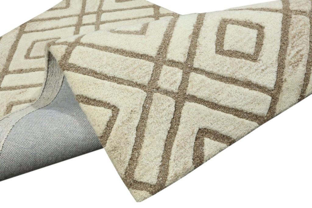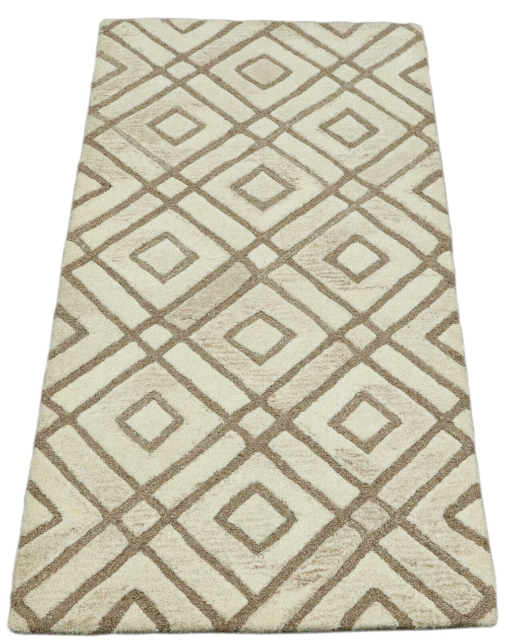 Tappeto 100% lana 70x140 cm Fatto a mano Colore Beige Caffè Tuftato a mano T1028