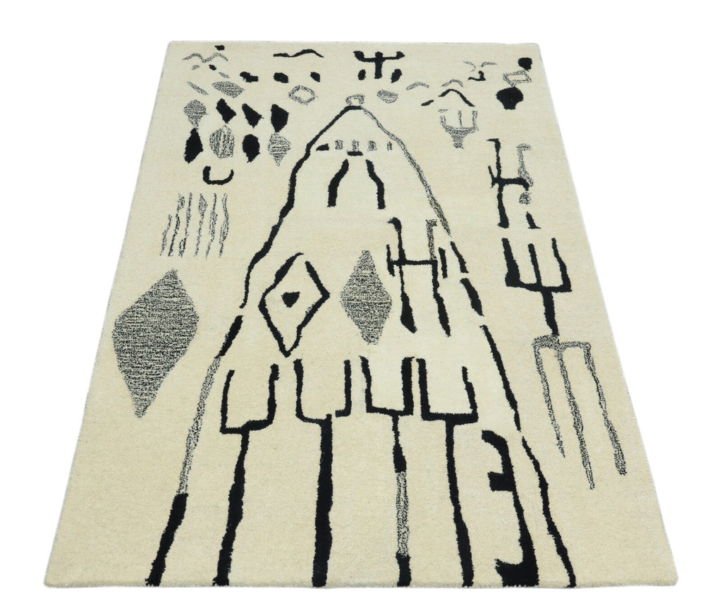 Tappeto in lana 120x180 Beige Nero Motivo etnico astratto Tappeto annodato a mano 307