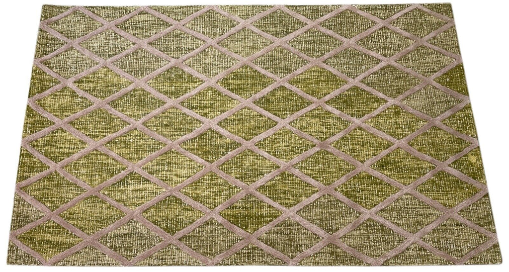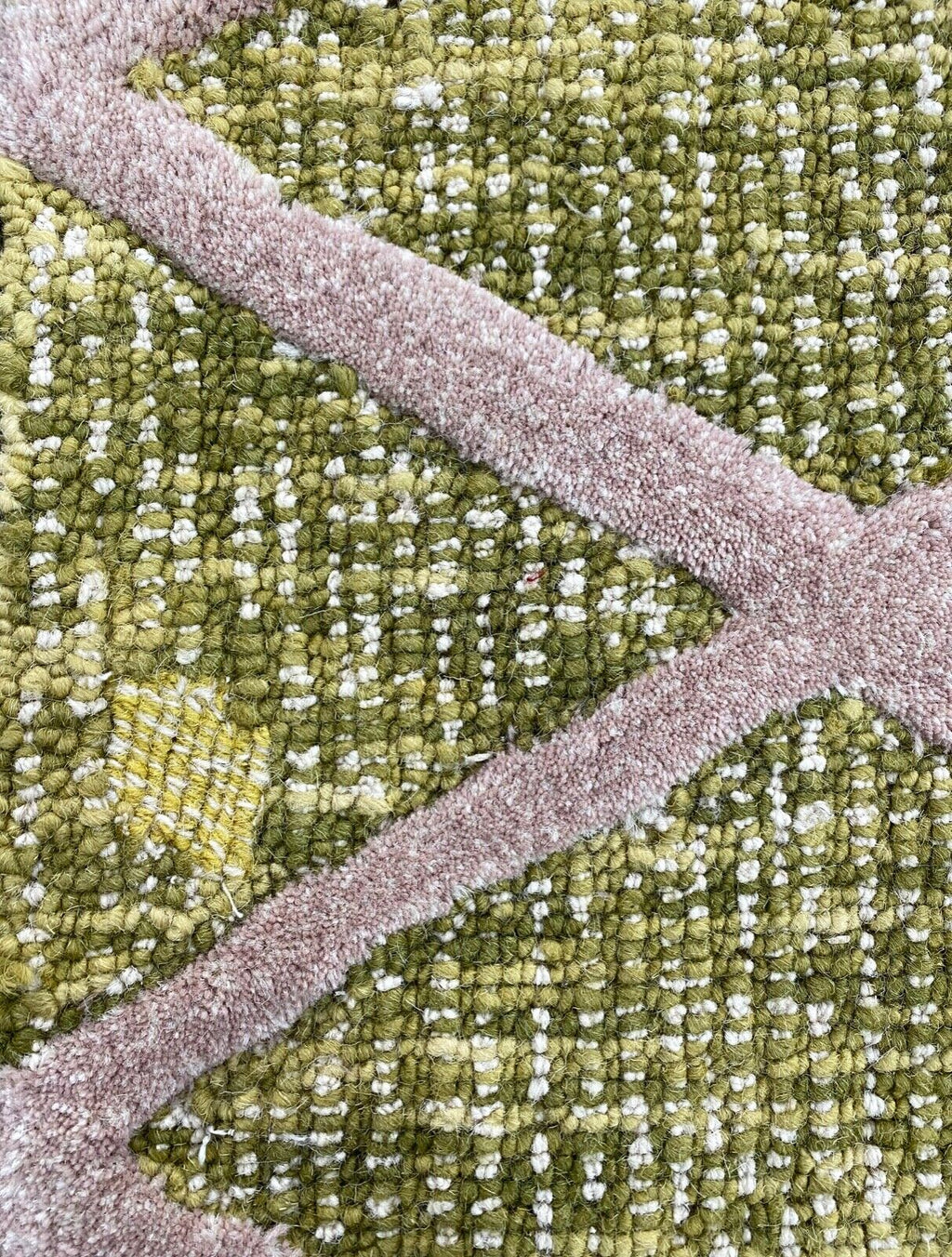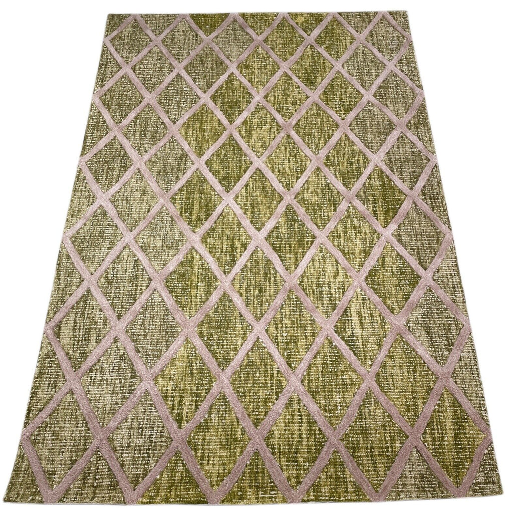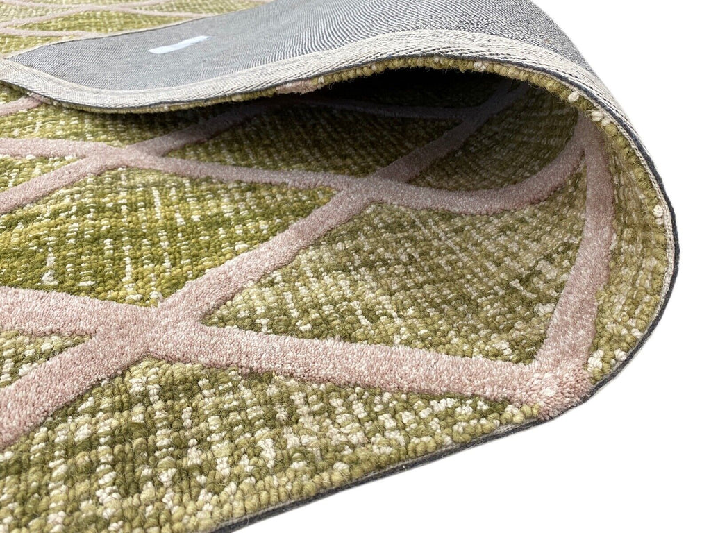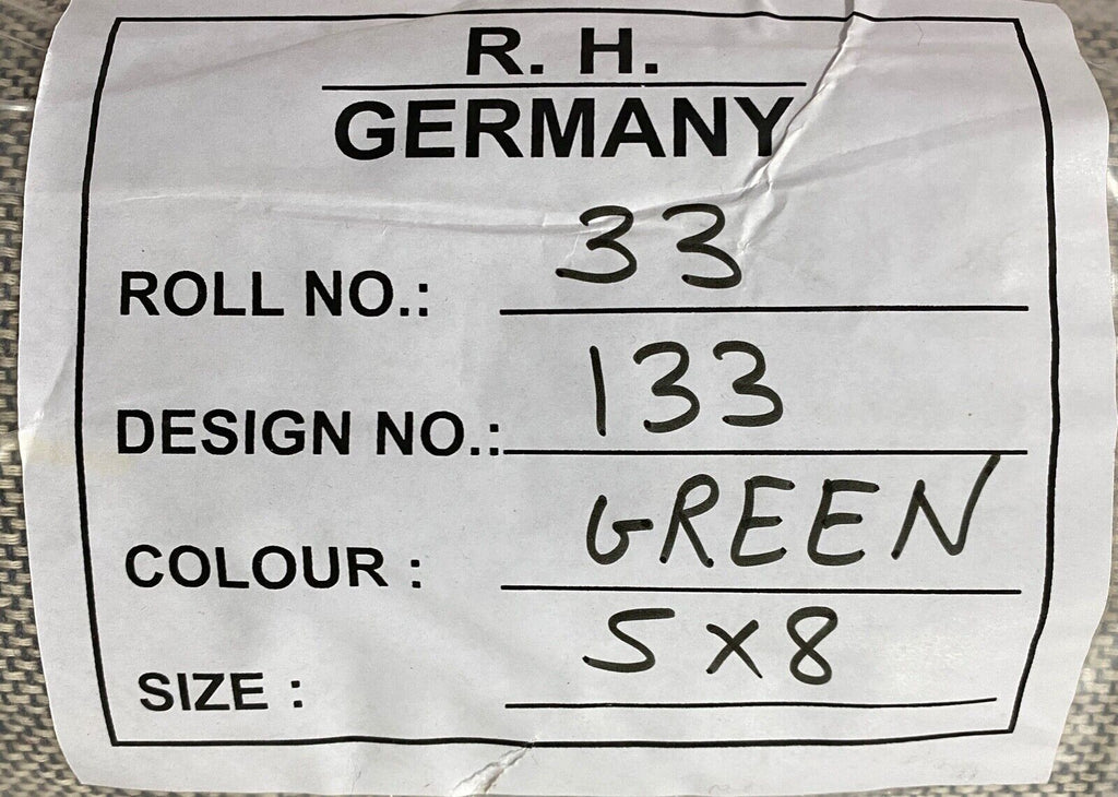 Žalias, smėlio spalvos, pilkas rankomis dygsniuotas rytietiškas kilimas, 100 % vilna, 155 x 242 cm, D-133