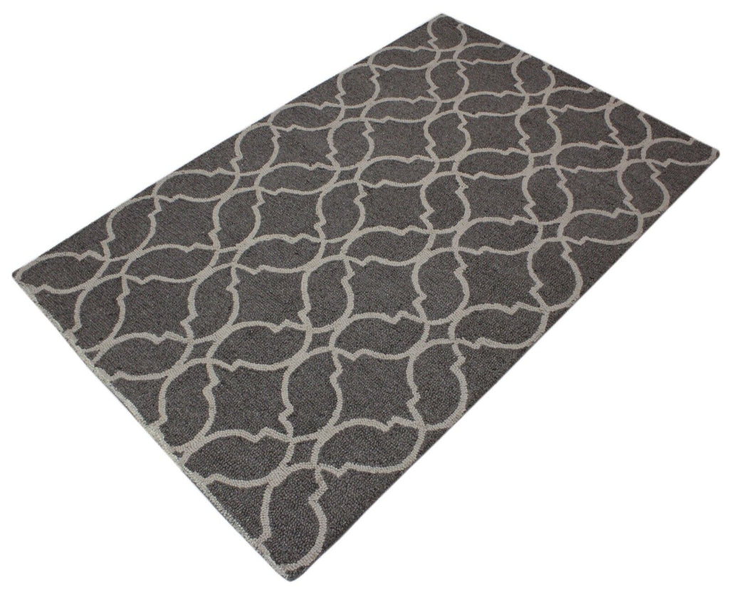 Kilimas, 100 % vilna, antracito pilka, smėlio spalvos, rankų darbo, rytietiškas kilimas, 150 x 240 cm