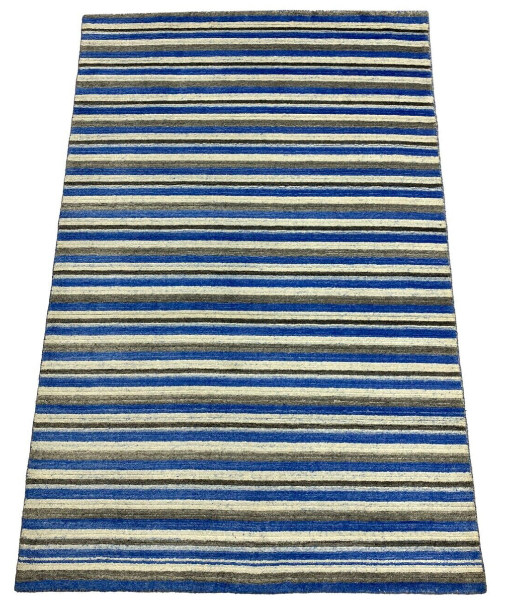 Gabbeh kilimas, smėlio spalvos, mėlynas, rudas, 100% vilna, Lori audimo staklėmis, rankomis austas, 114x178 cm, S166