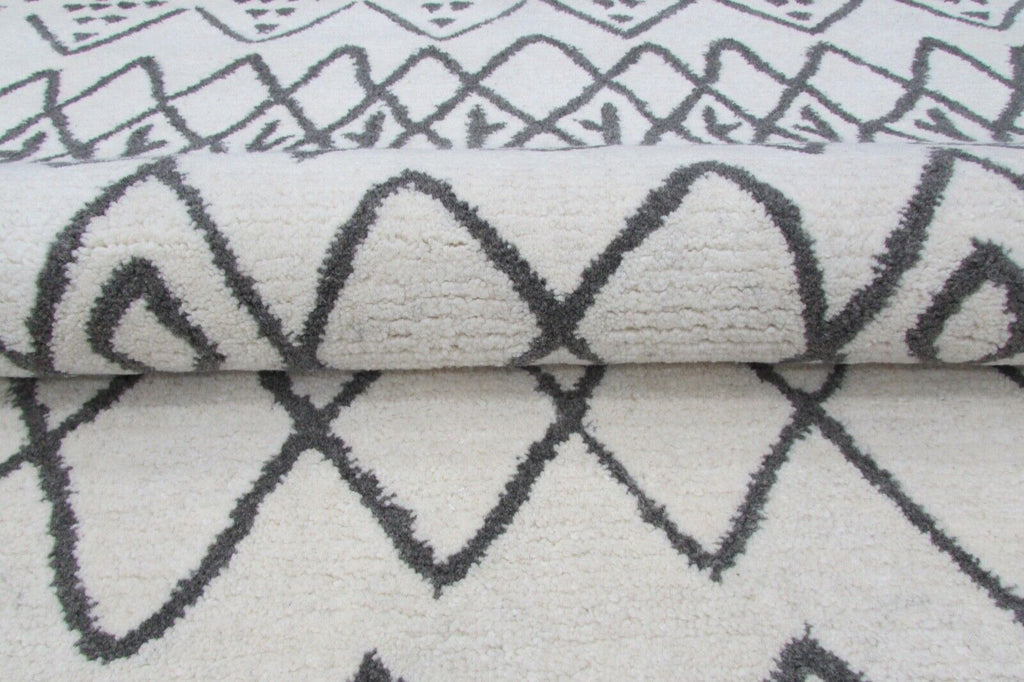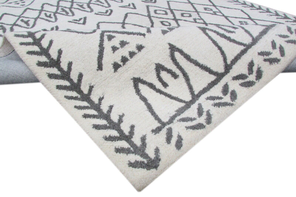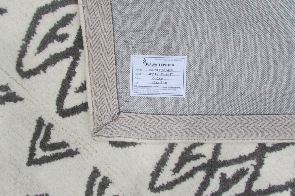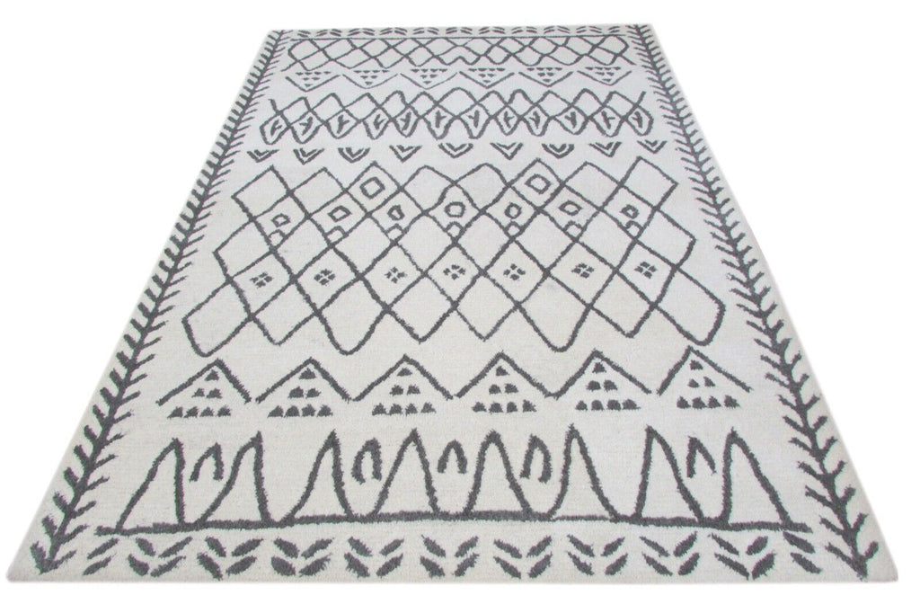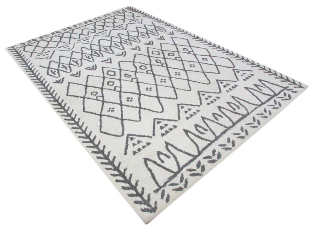 Svetainės marokietiško dizaino rankomis dygsniuotas kilimas, 100 % vilnos, smėlio/pilkos spalvos, 160 x 230 cm