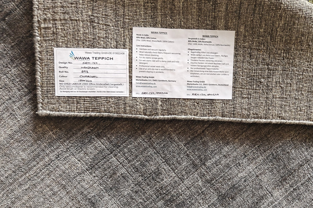 Handgeweven vloerkleed 150x240 cm, antracietkleurige, glanzende wol-viscose, woonkamer SH124