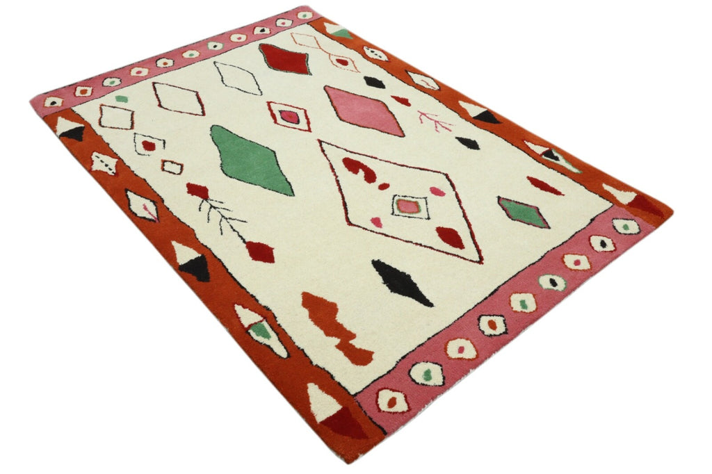 Wollen vloerkleed 120x180 cm, beige, rood, veelkleurig Marokkaans patroon, woonkamer, handgetuft, HT298
