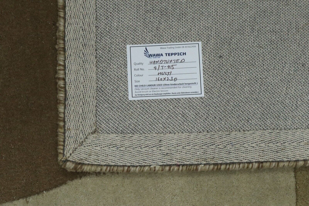 Beige Braun Teppich 100% Wolle 160X230 cm Handarbeit Handgetuftet T915