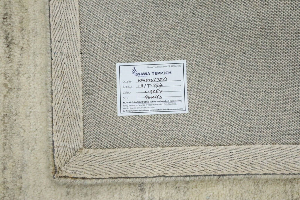 Beige Grau Orient Teppich 100% Wolle 90X160 cm Handarbeit Handgetuftet T977