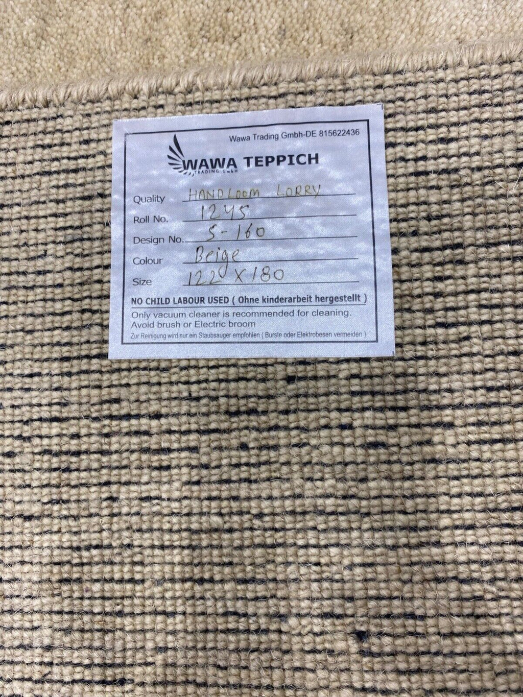 Beige Teppich 100% Wolle Gabbeh lori Handgewebt 122x180 cm S160