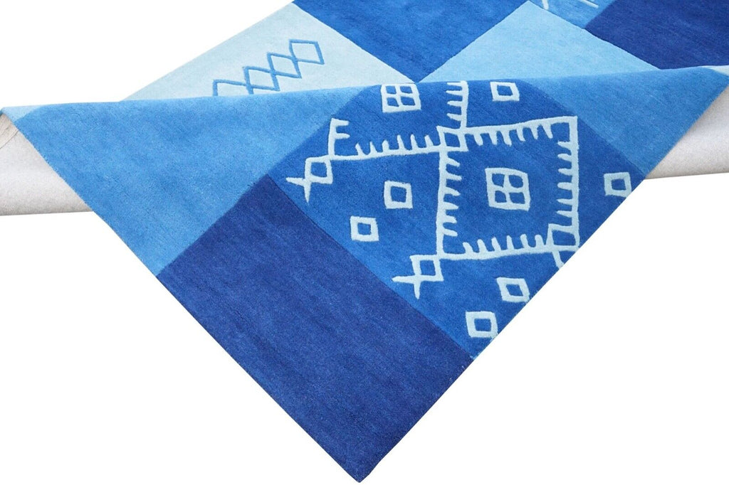Blau Beige Teppich 100% Wolle 160X230 cm Orientteppich Handgetuftet HT404
