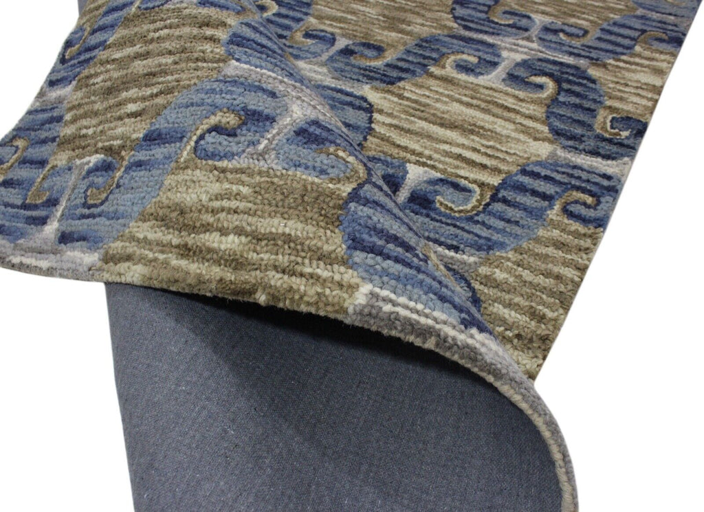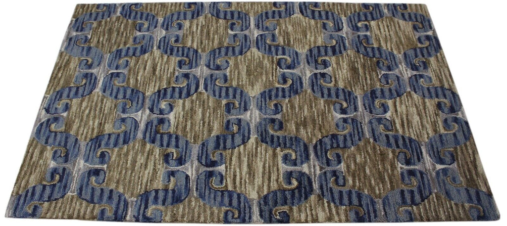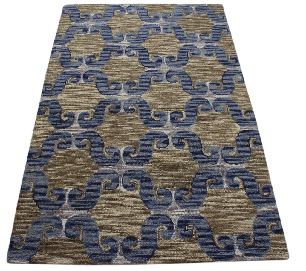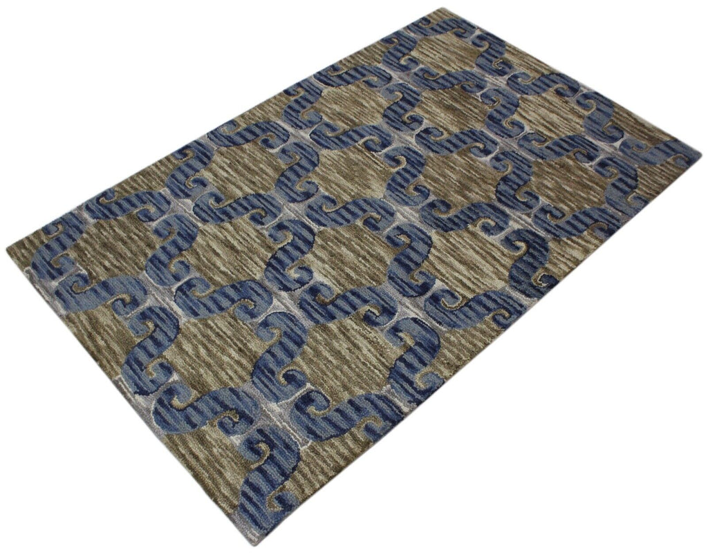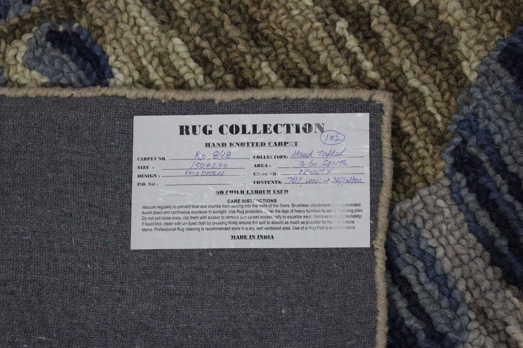 Blau Braun Teppich 100% Wolle Orientteppich 150X240 cm Handgetuftet MH848