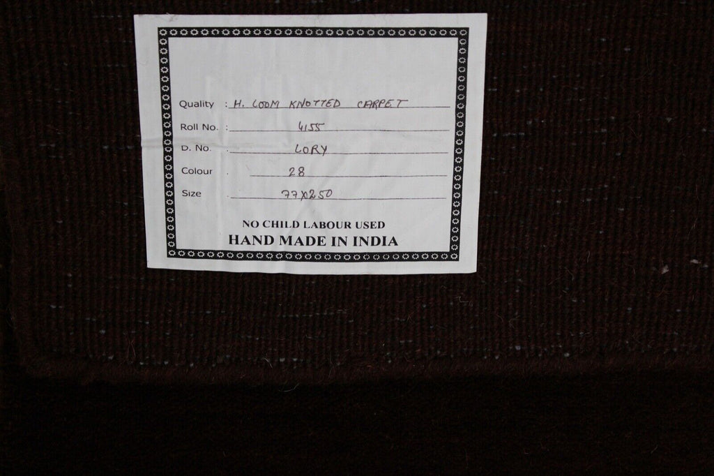 Braun Brücke 100% Wolle Läufer 75X250 cm Handgewebter Teppich Orientteppich C28