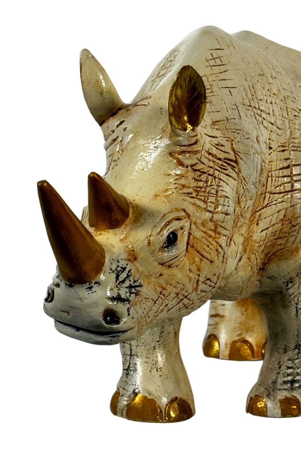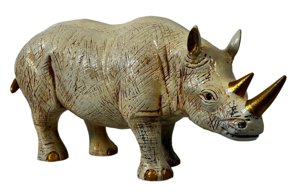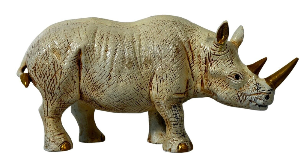 Die meisterhafte Vereinigung von Jahrhunderte altem Handwerk und zeitgenössischem Design macht diese Nashornskulptur zu einer imposanten Ergänzung für jeden Raum. Mit Maßen von 40 cm Länge, 15 cm Breite und 19 cm Höhe präsentiert sie sich als faszinierendes Kunstwerk.