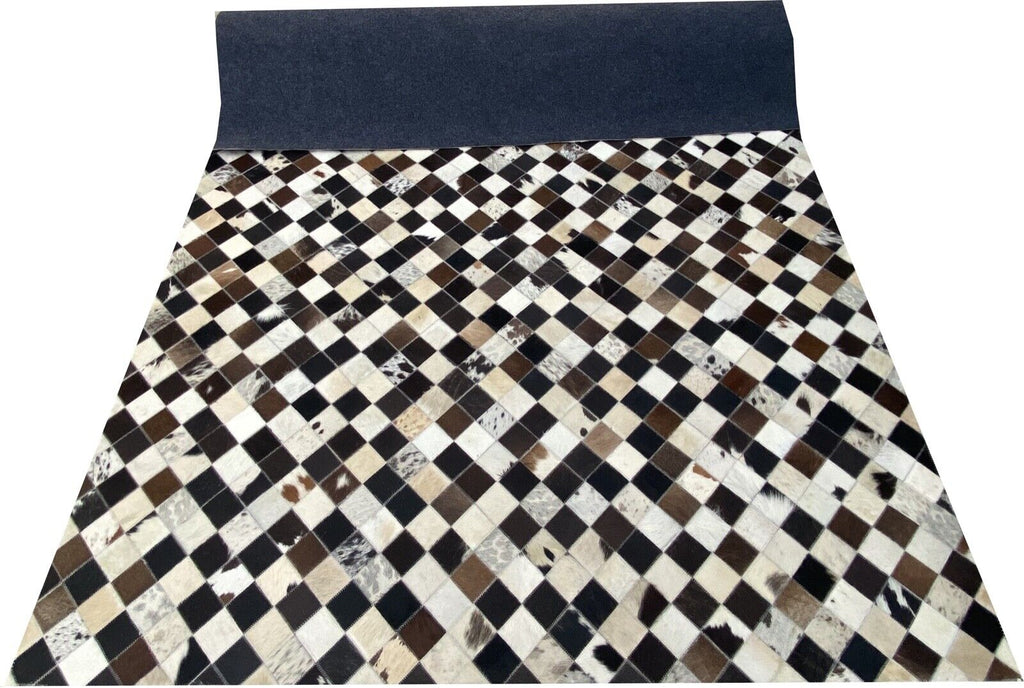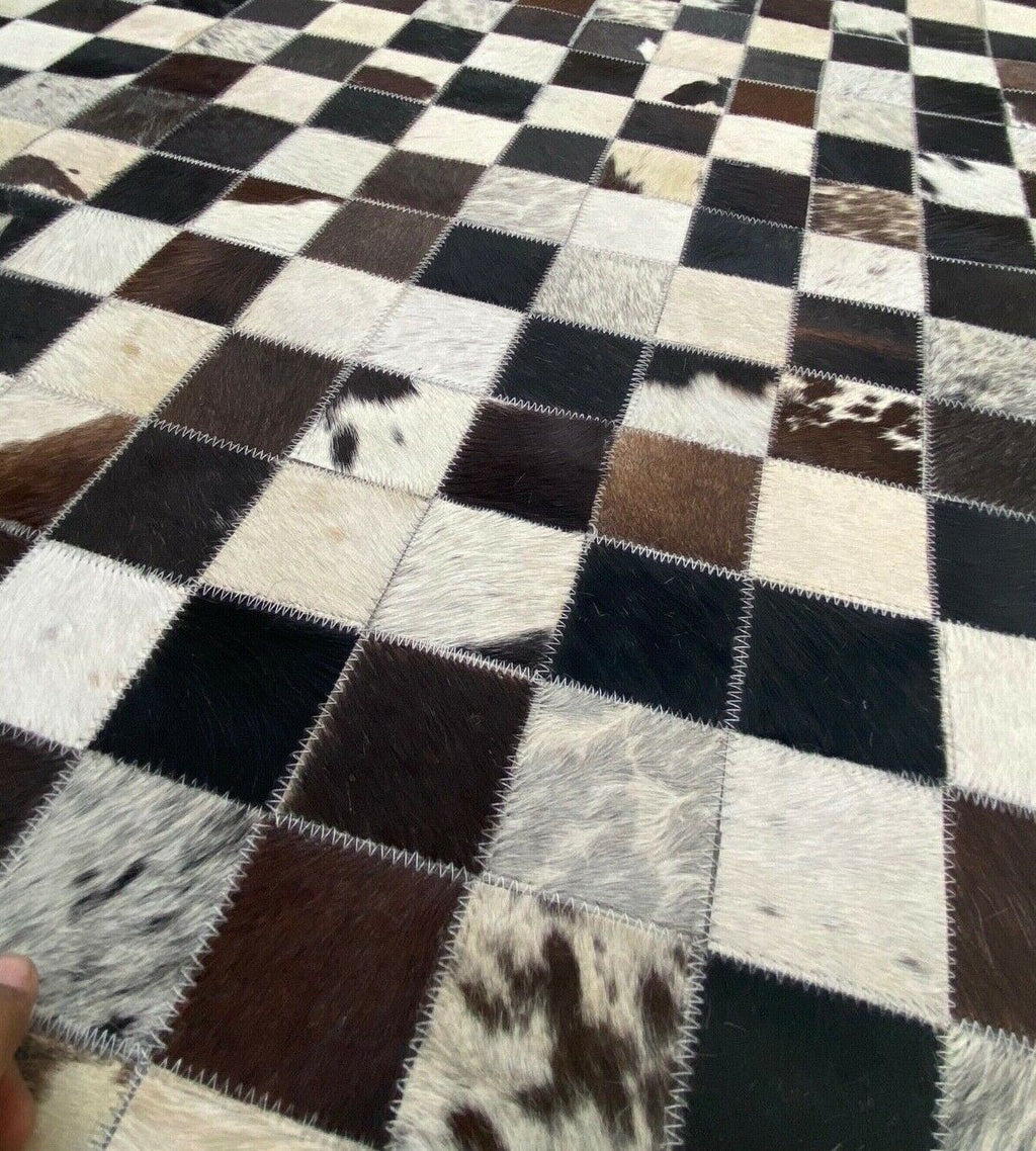 Echtleder Teppich 160x230 cm 100% Kuhfell Leder ivory Braun Beige Patchwork L2