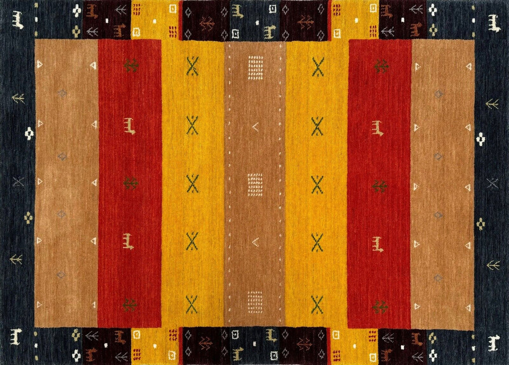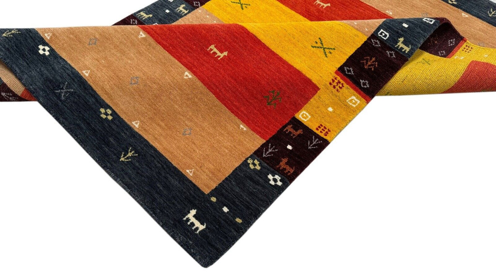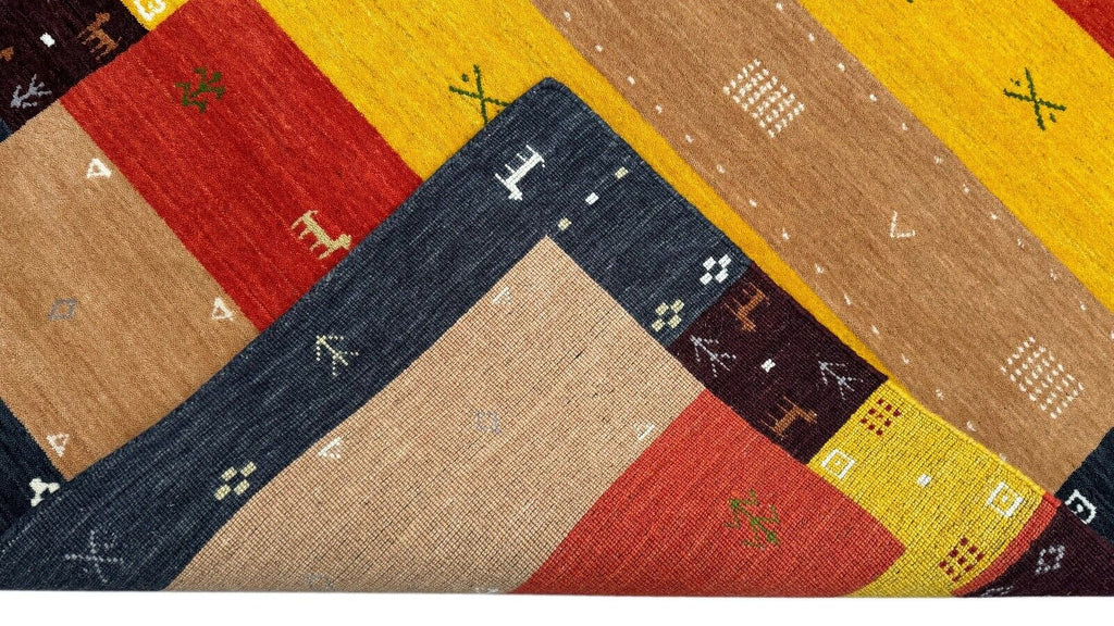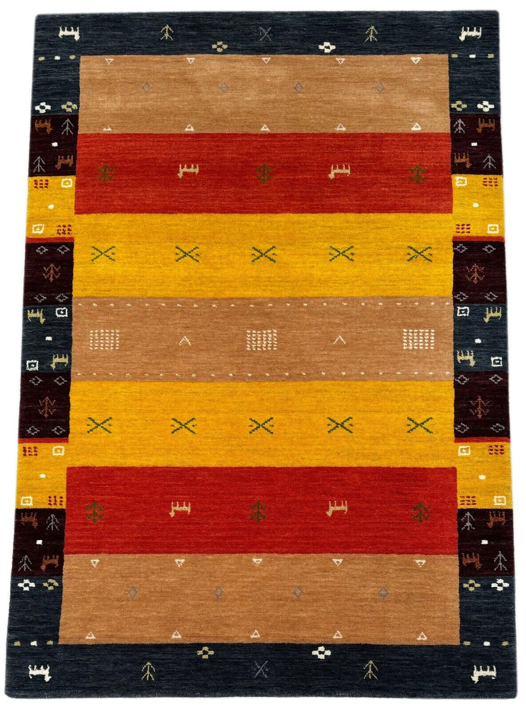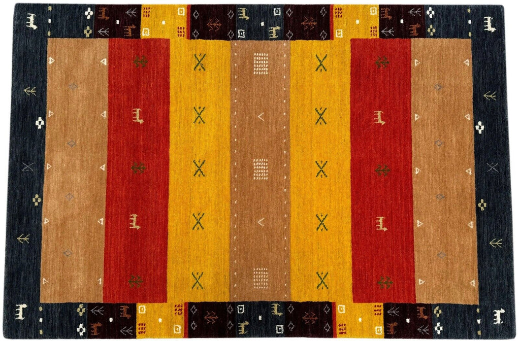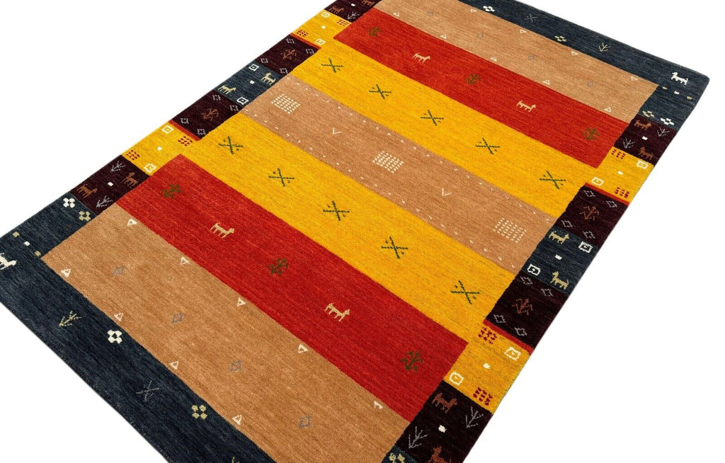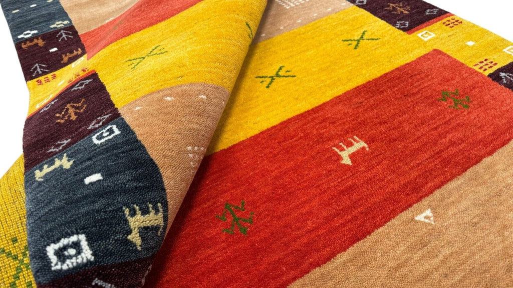 Gabbeh Teppich 100% Wolle 120x180 cm Rot Gelb Bunt Handgewebt Orientteppich BR11