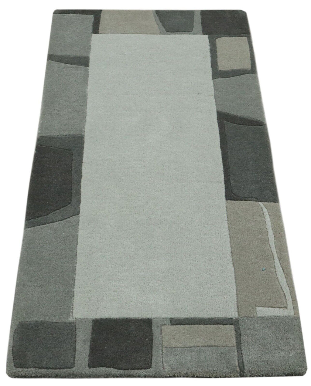 Gabbeh Teppich 100% Wolle 70X140 cm Handarbeit Grau Handgetuftet T1006